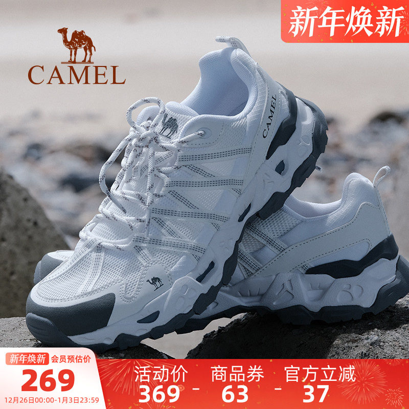 骆驼男鞋青岩2025秋冬新款户外网面休闲运动白鞋透气女徒步登山鞋