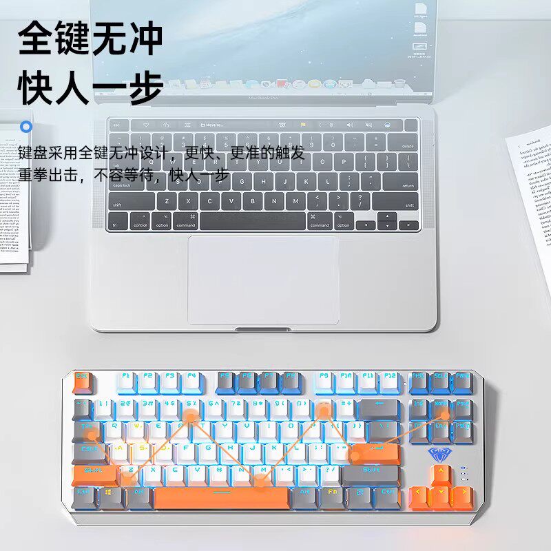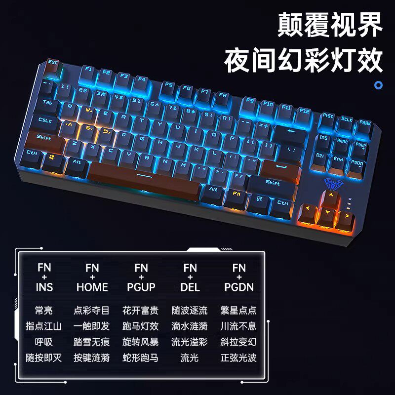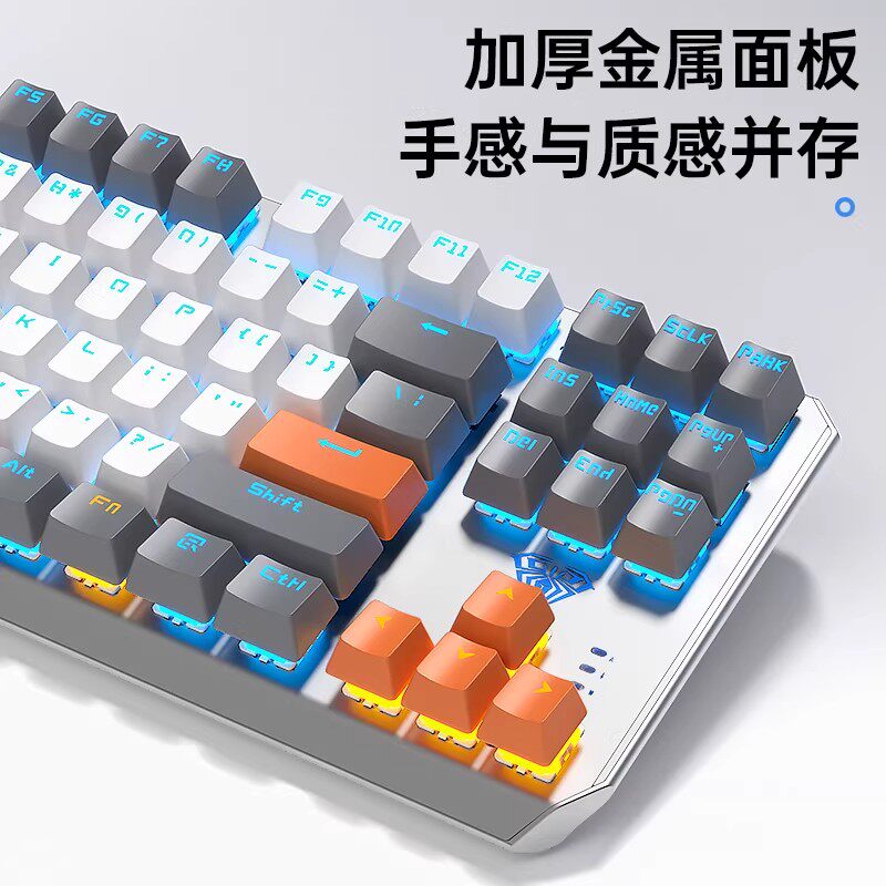 狼蛛F 87键有线机械键盘F3087侧刻等高线电竞游戏办公电脑专用
