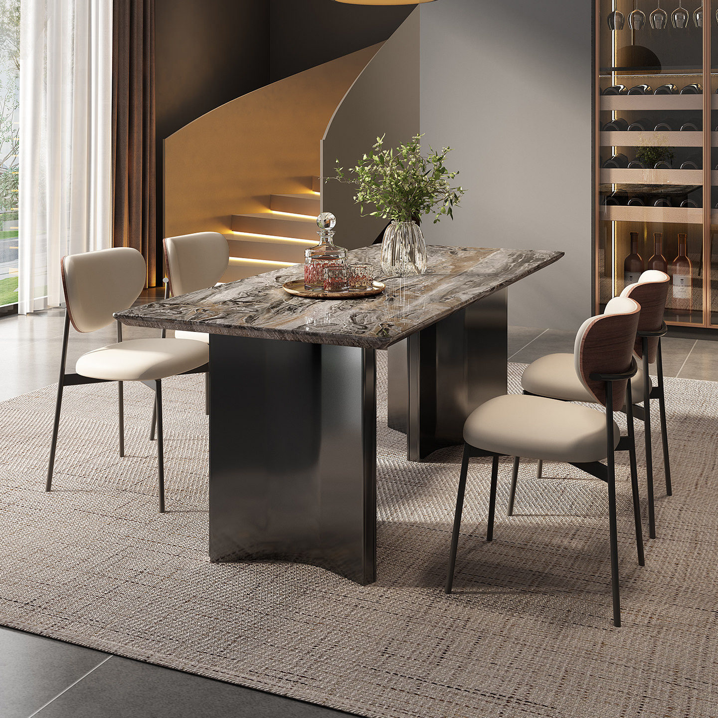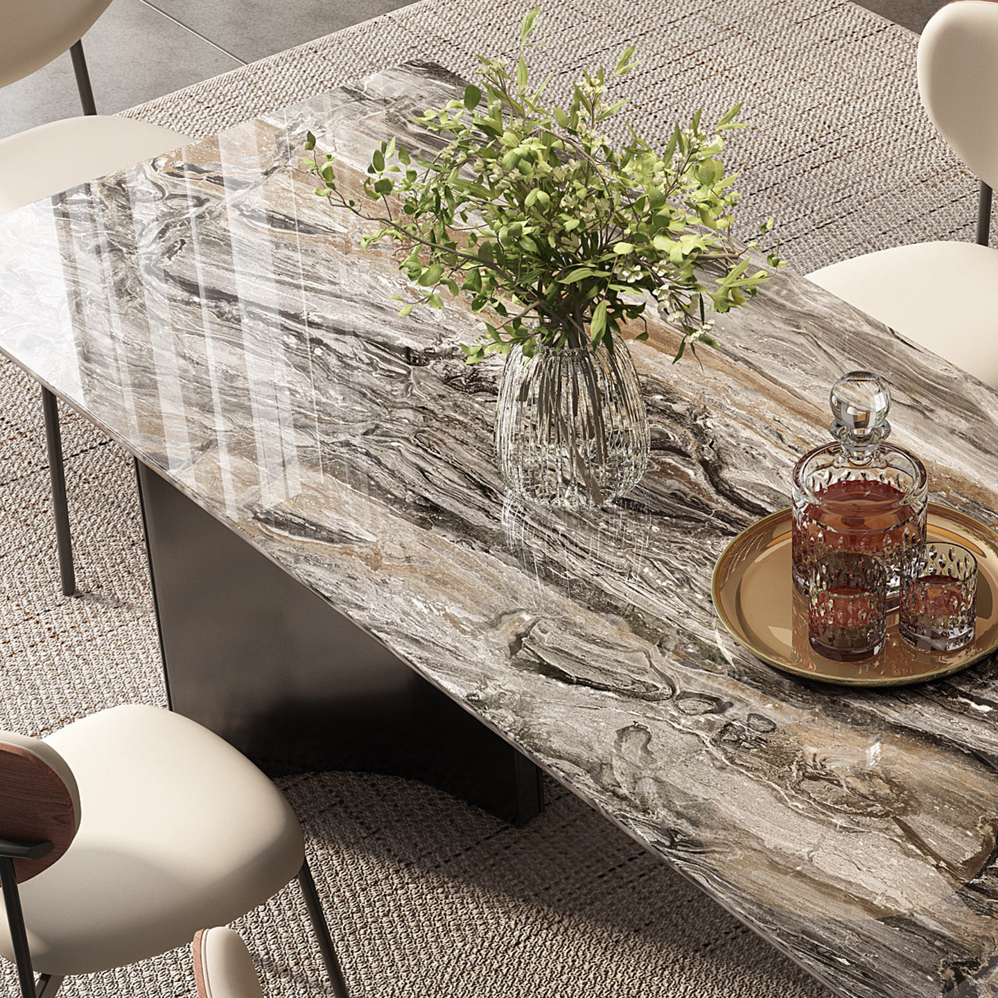进口天然威尼斯棕长方形家用奢石餐桌轻奢高级感大理石餐桌椅组合