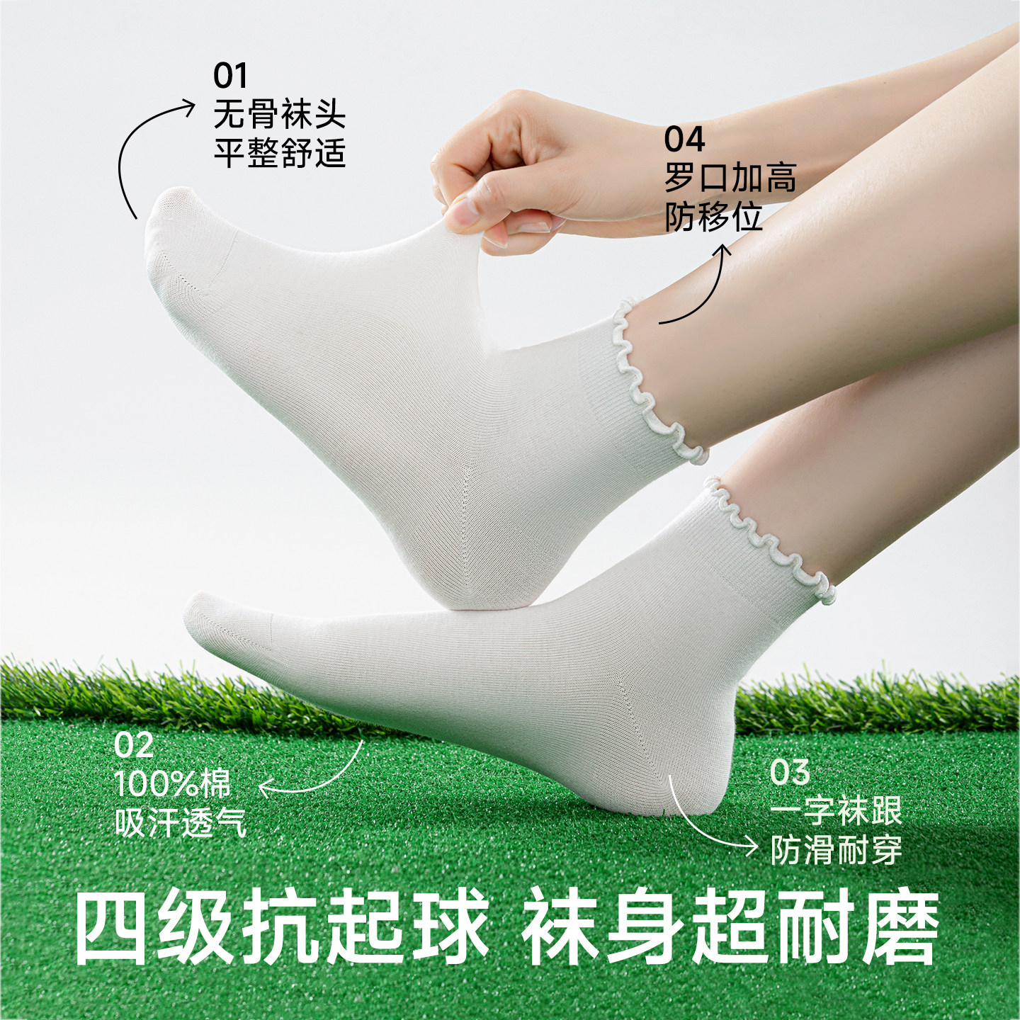 100%纯棉花边袜子女夏季薄款中筒袜2026新款夏天白色无骨月子短袜