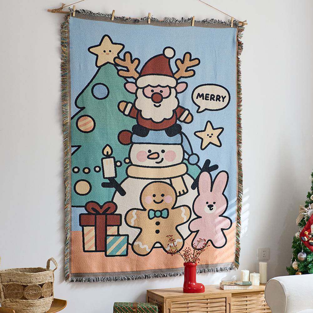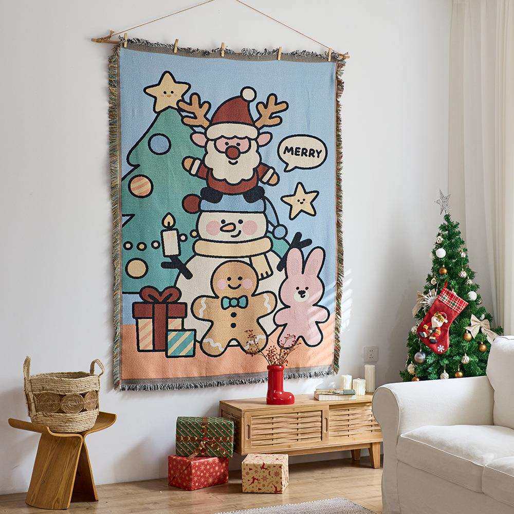 圣诞节挂毯装饰布提花线毯房间布置背景布户外旅行露营毯野营挂布
