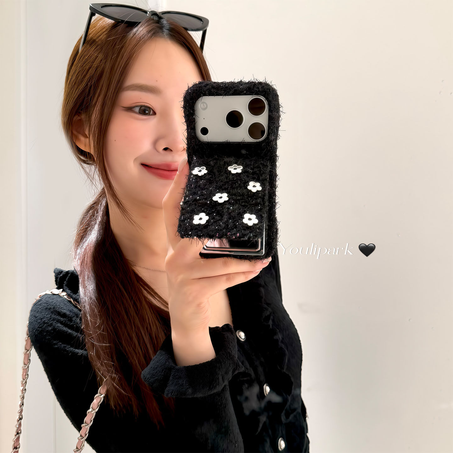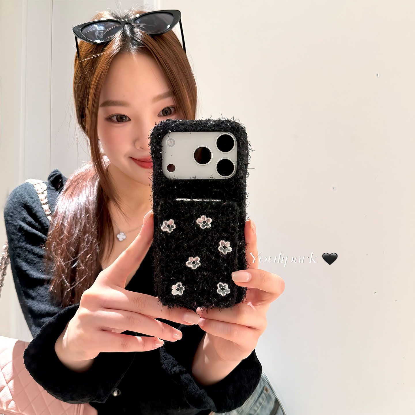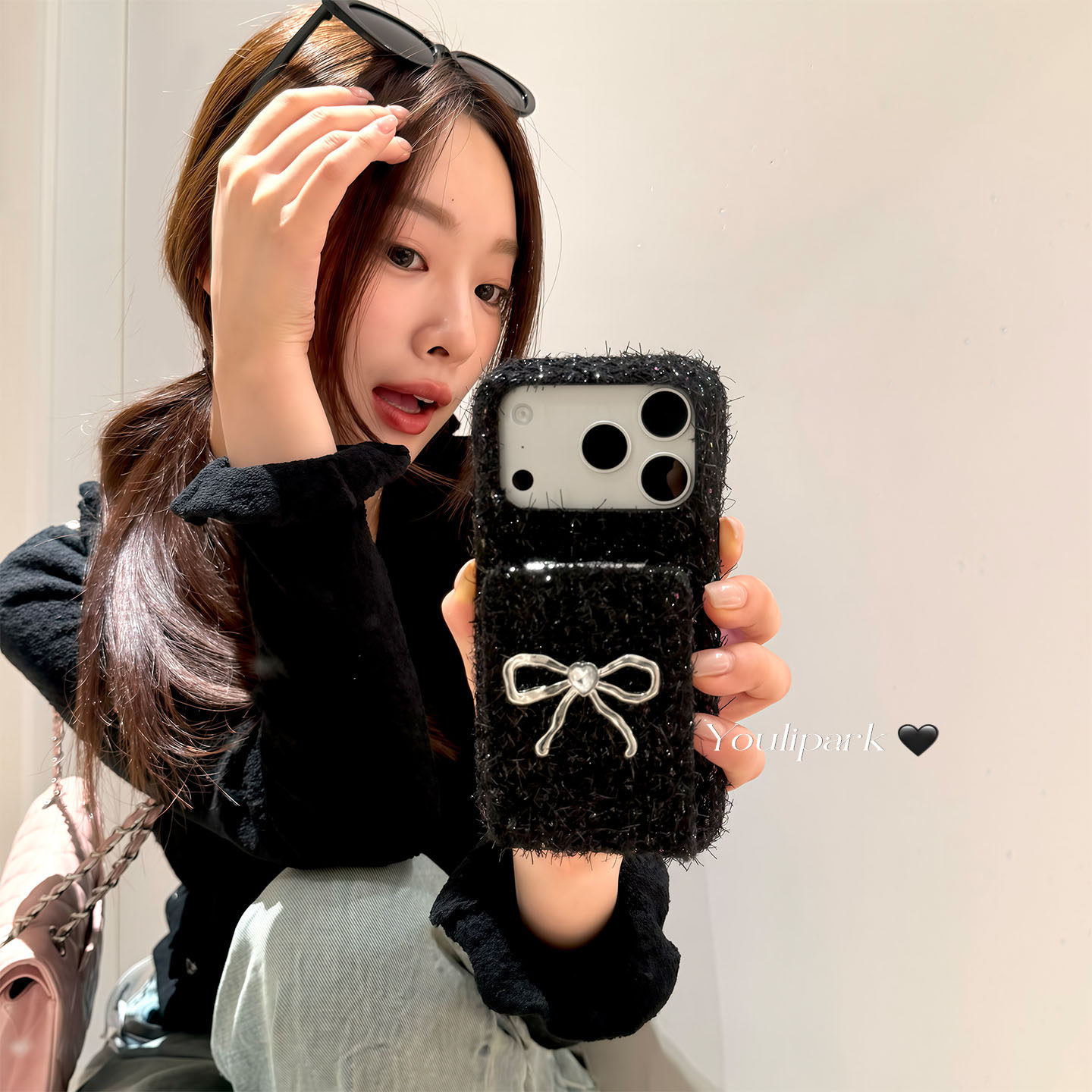 由里公园ins秋冬小香风花朵蝴蝶结镜子支架17适用17pro苹果17ProMax手机壳iPhone16全包14少女16Promax保护套