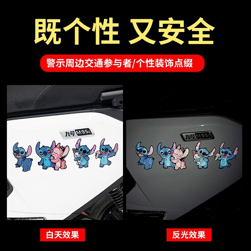史迪仔车身装饰贴纸电动摩托车强反光安全警示贴个性车贴遮挡划痕