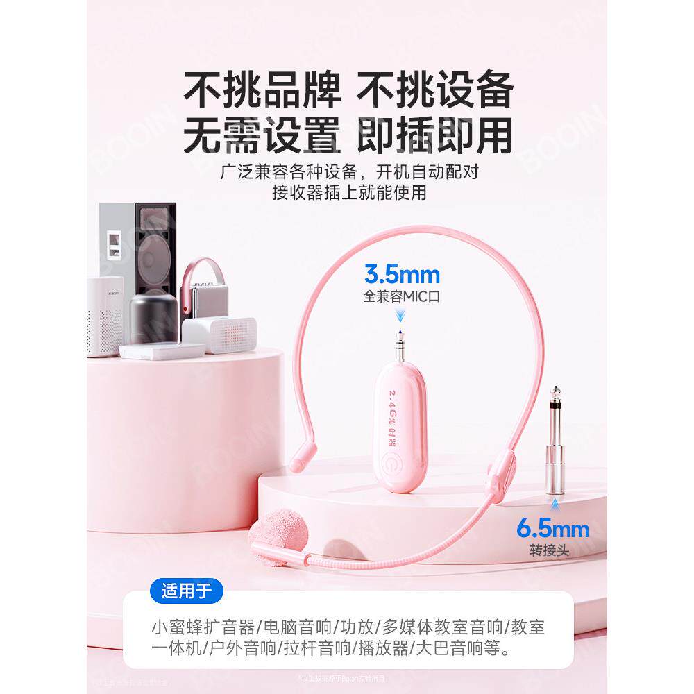 booin无线麦克风教师上课专用讲课话筒小蜜蜂扩音器头戴耳麦