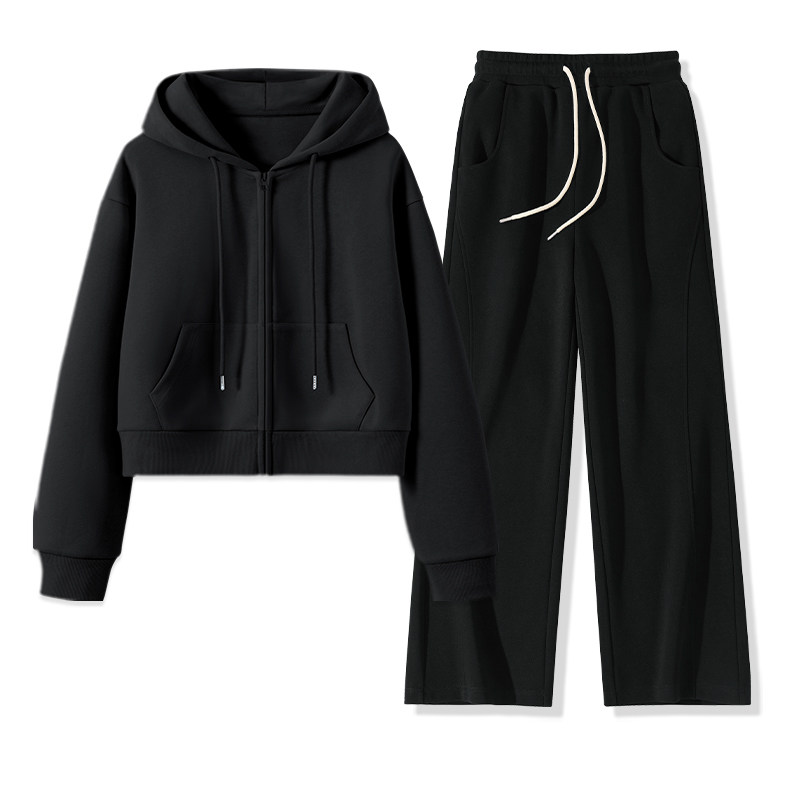 都市丽人运动套装女春季休闲黑色卫衣两件套2026超火一整套穿搭Y