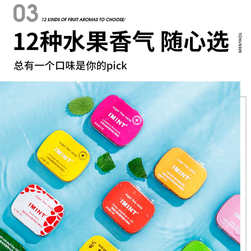 imint糖无糖薄荷糖亲嘴清新口气糖果硬糖铁盒装柠檬水果清凉便携