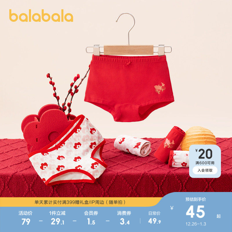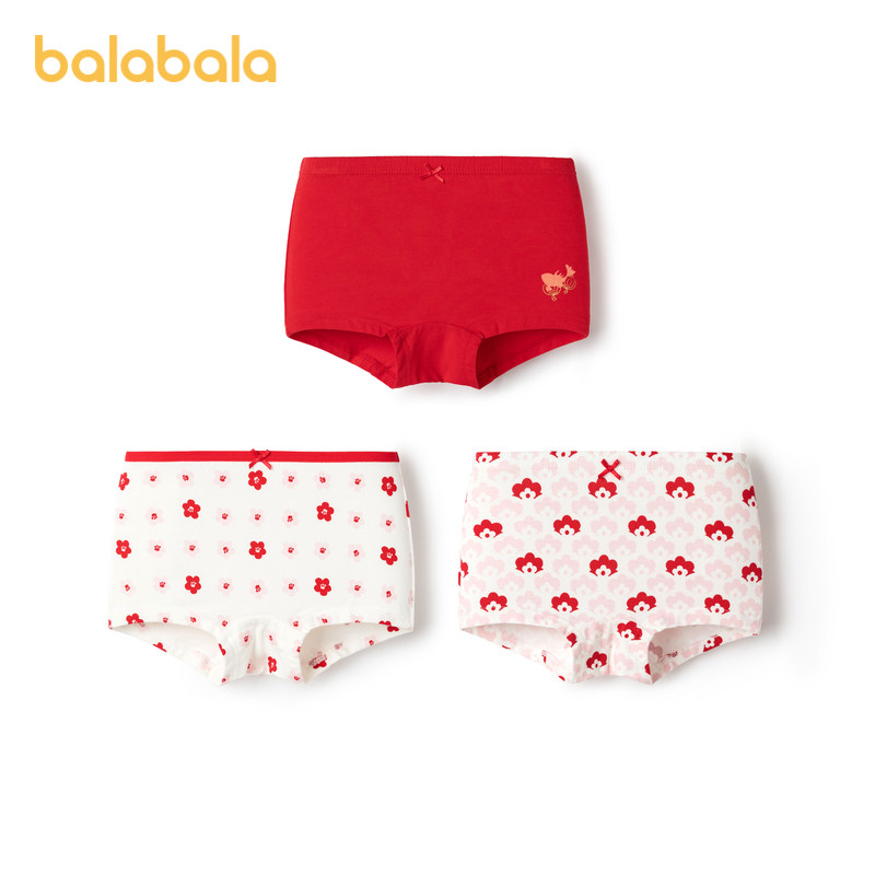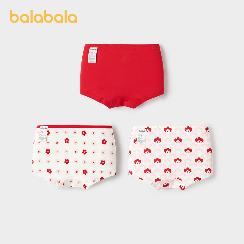 巴拉巴拉女童内裤平角棉本命年红色儿童短裤四角龙年新年款三条装