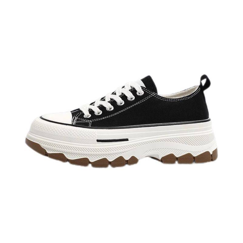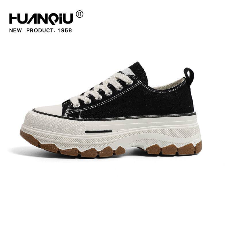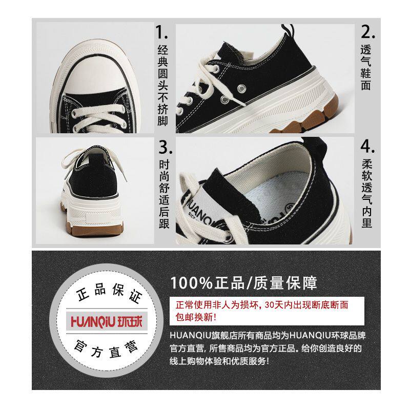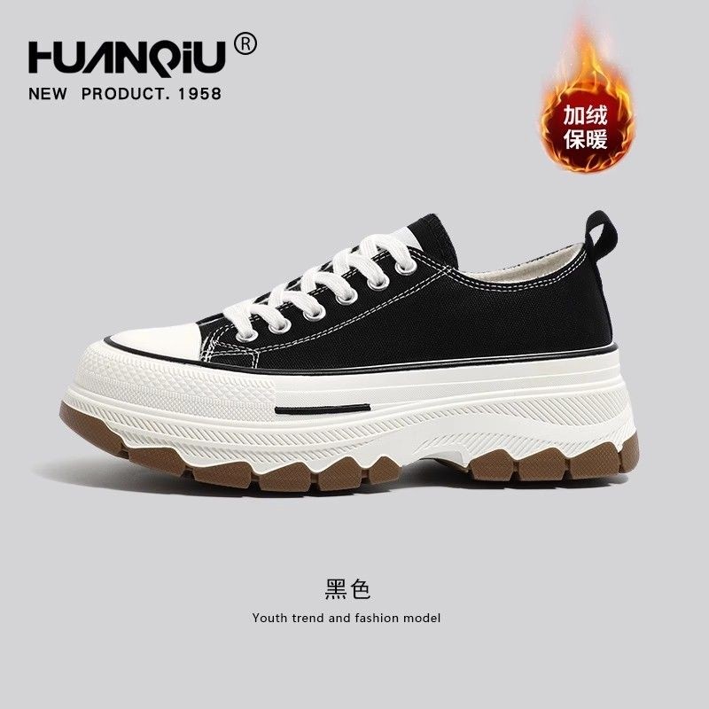 环球厚底加绒帆布鞋女2023新款秋冬季超火小众松糕底黑色休闲板鞋