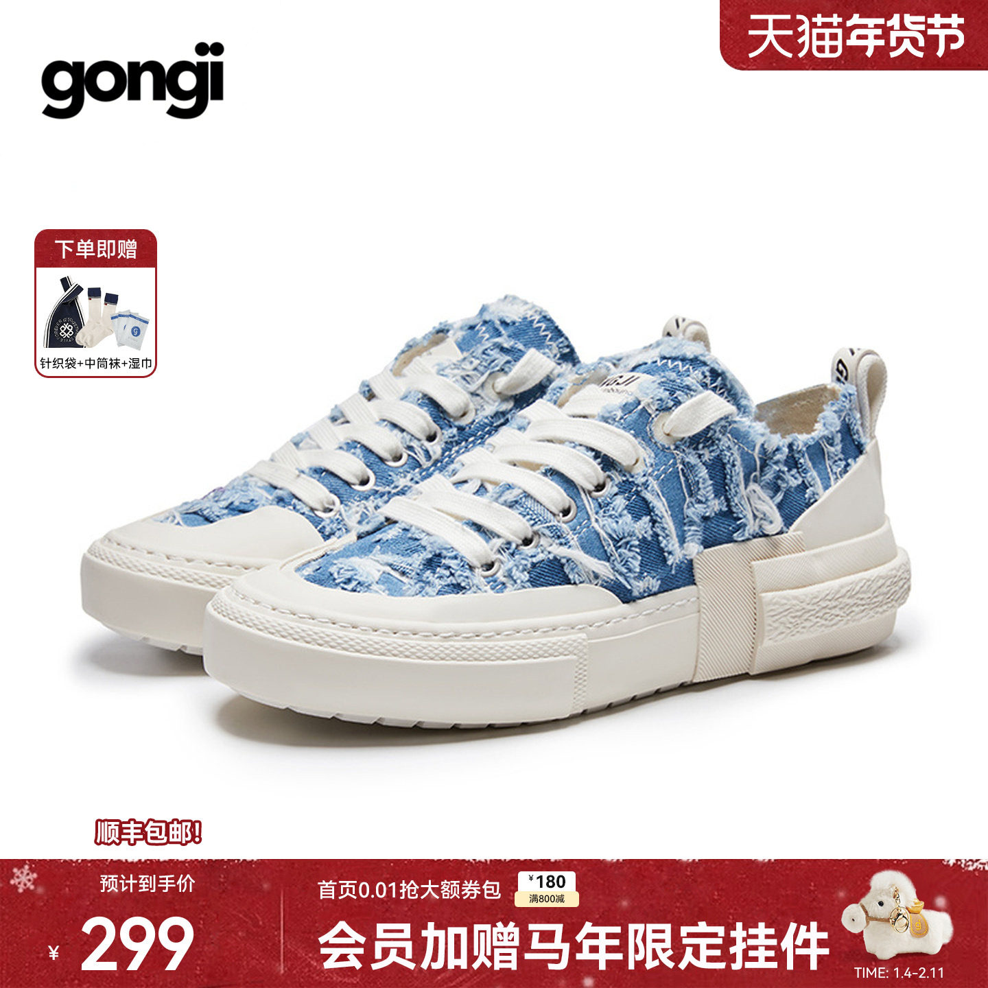 【Casper卡斯柏同款】GONGJI牛仔流苏板鞋女情侣帆布鞋小众国潮鞋