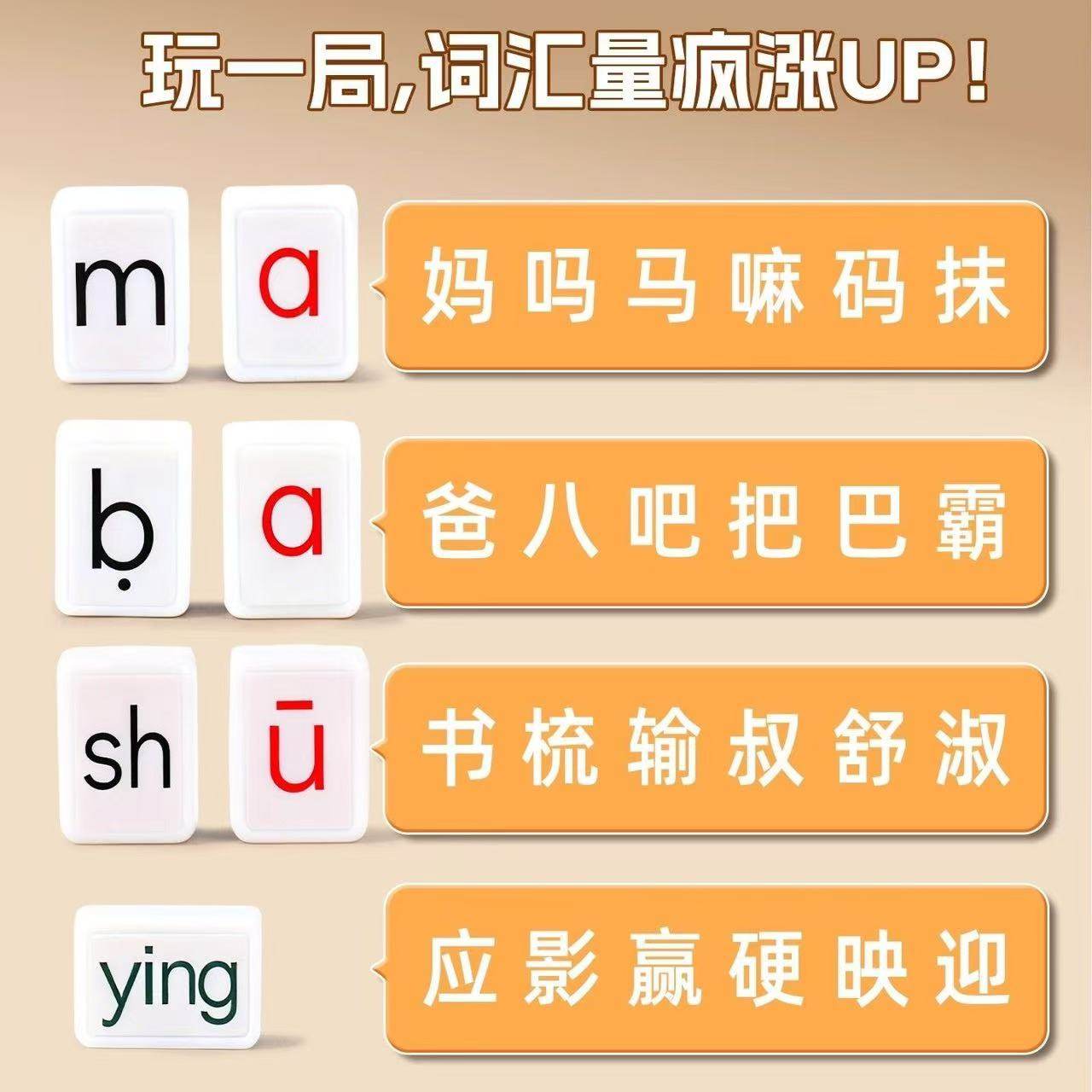 汉语拼音麻将字母儿童趣味拼读幼儿园小学一年级益智玩具学习桌游