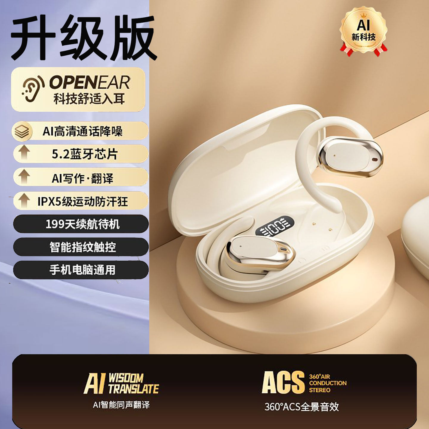 出国Ai智能翻译蓝牙耳机无线开放式骨传导运动长续航同声翻译耳机