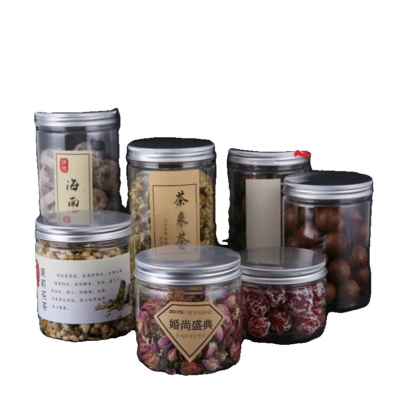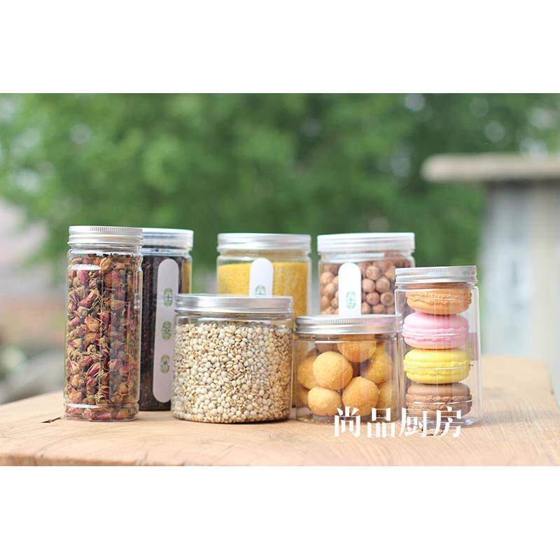 500ML250克铝盖透明塑料瓶子食品级饼干桶花茶瓶储物罐塑料包装罐