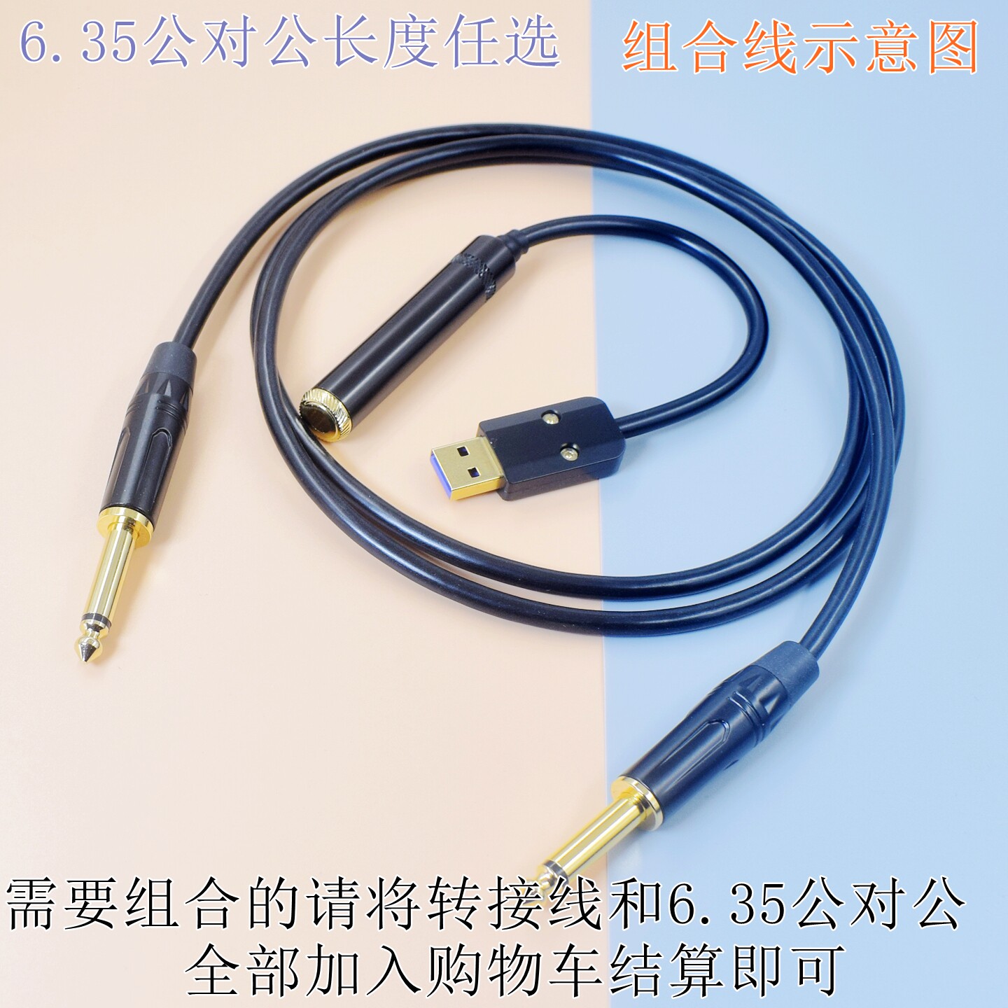 组合版电脑Rocksmith转接线6.35mm转USB-C TypeC乐器线6.35公对公母6.5吉他/贝斯摇滚史密斯吉他线手机录音线