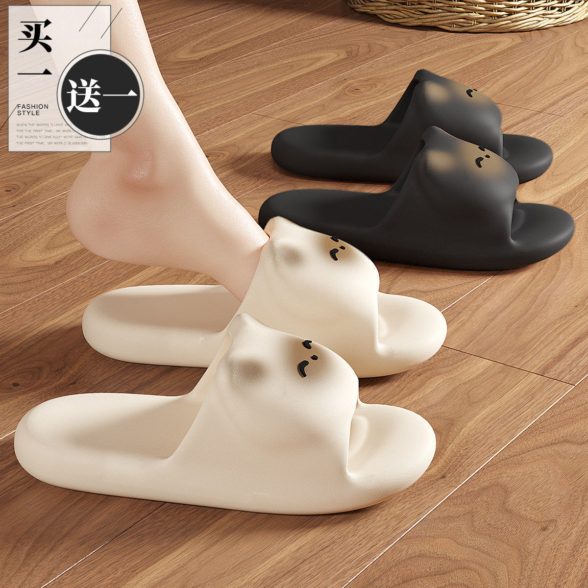 买1送1拖鞋女款夏季家居室内厚底防滑浴室洗澡情侣一对家用凉拖鞋