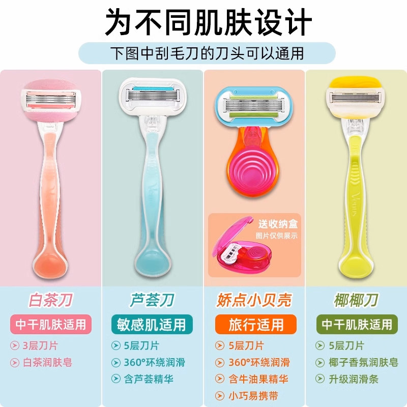 维纳斯芦荟脱毛刀替换刀头5层刀片女用剃毛刀腋下脱毛剃毛器