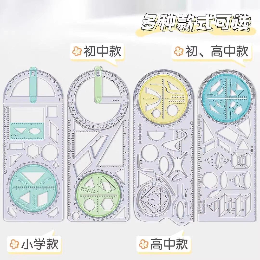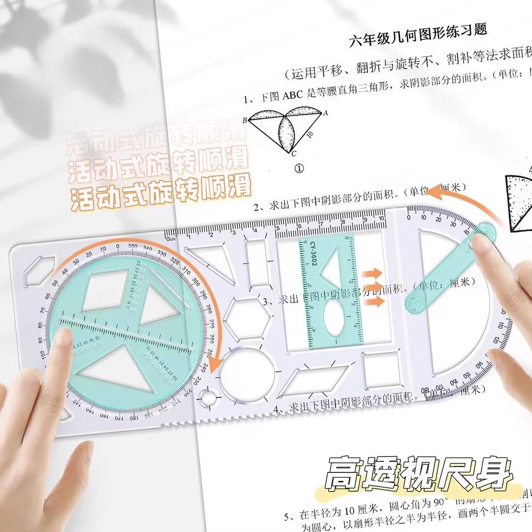 多功能四合一量角器小学生专用四年级六年级活动角绘图尺初中生函数几何图形万能角度三角板套装画圆模板