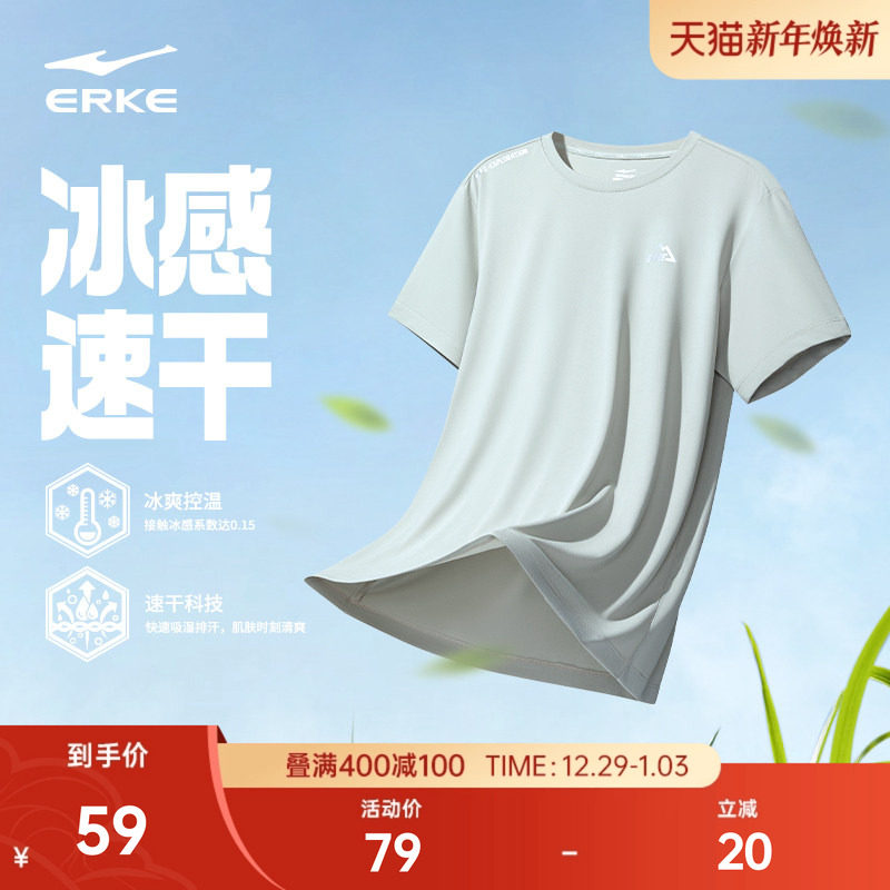 鸿星尔克速干衣男夏季新款男士冰丝短袖t恤男生羽毛球运动服上衣