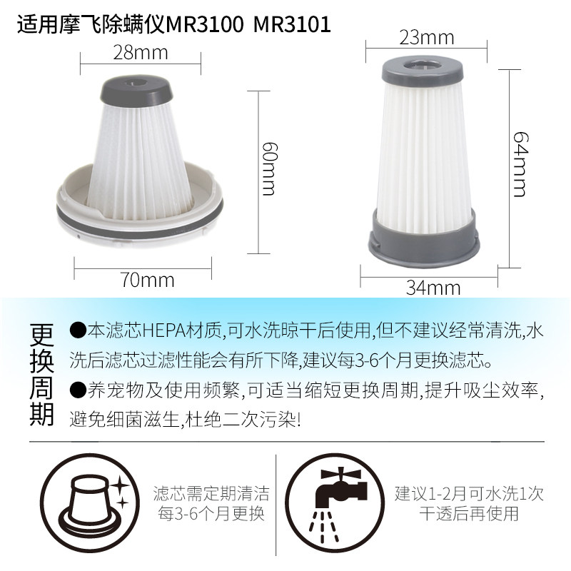 适用摩飞有线除螨仪滤网mr3101滤芯MR3100吸尘器耗材配件