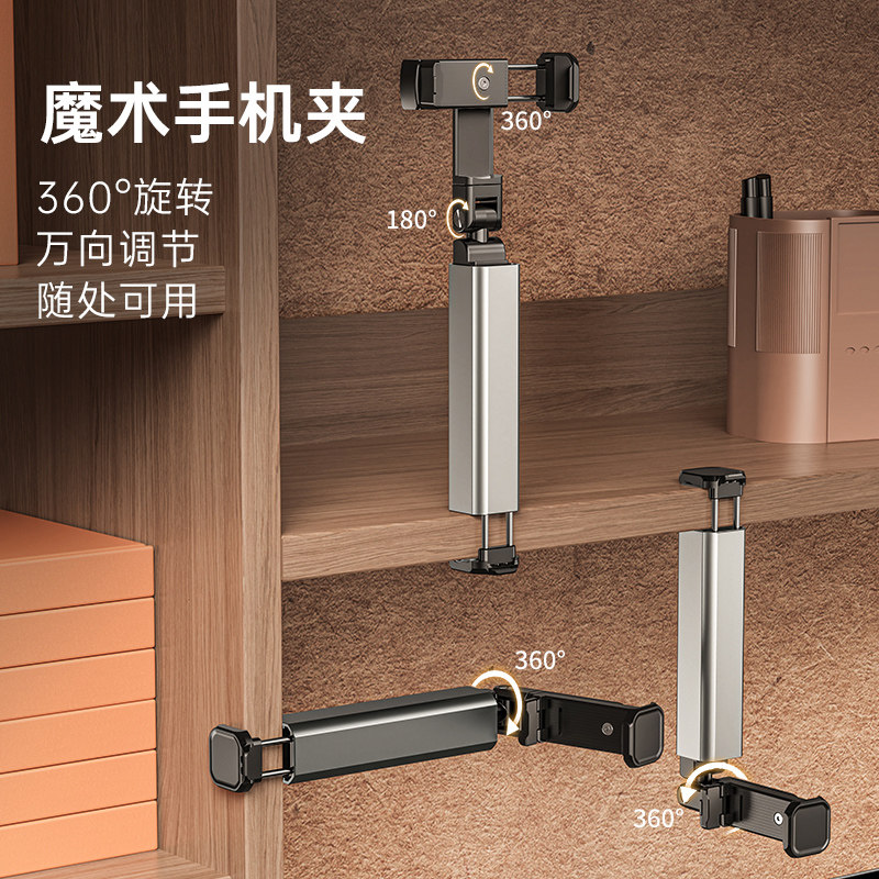手机拍摄支架直播专用自拍杆三脚架落地式多功能支撑架通用捭机架户外便携伸缩升降网课考研复试架子三角支夹