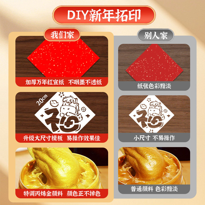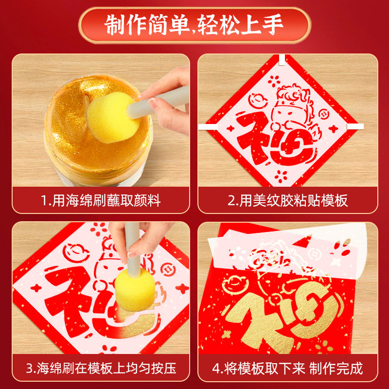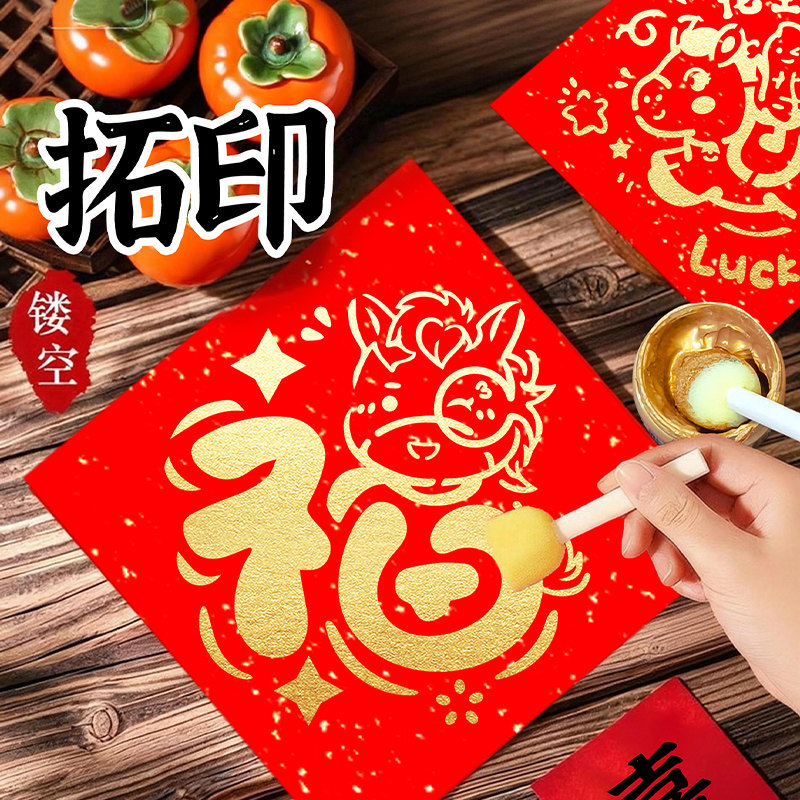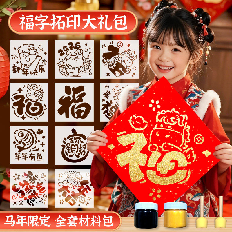 马年福字拓印年画diy手工材料非遗团建儿童过新年亲子活动制作套装幼儿园元旦春节镂空拓印模板工具颜料2026