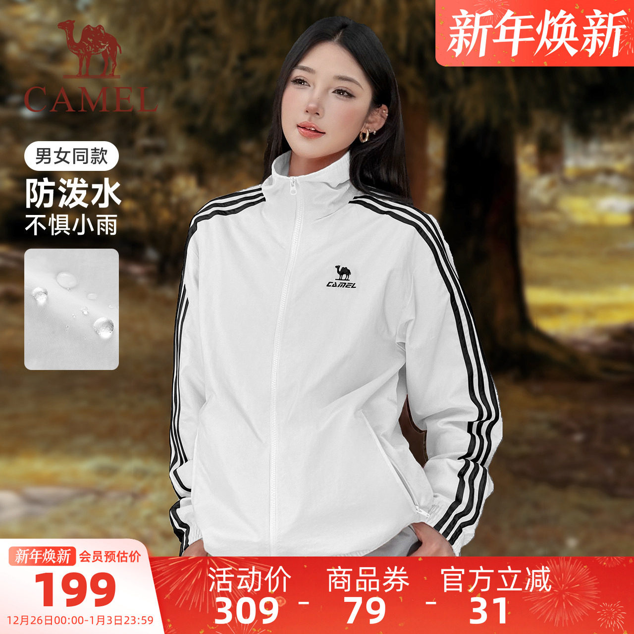 骆驼全地形风衣立领外套2025冬季男女同款防泼水休闲黑白夹克外套