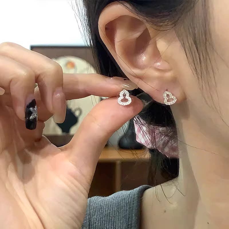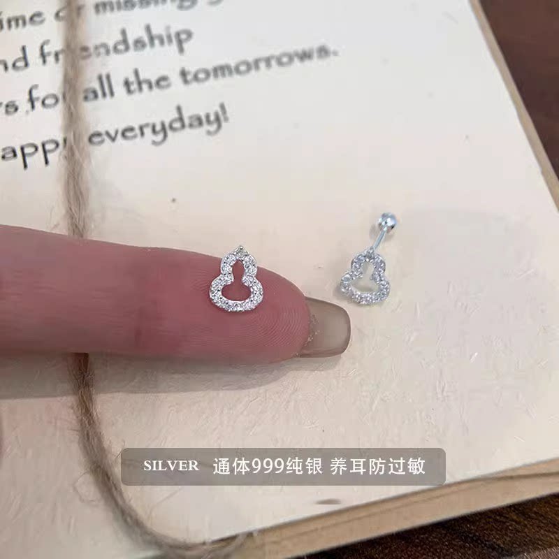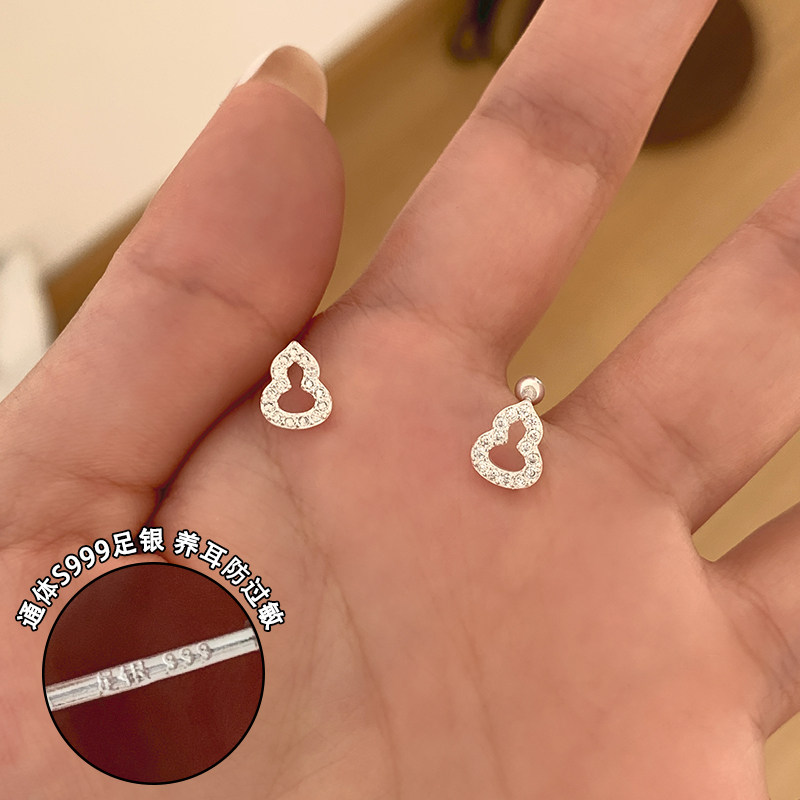 为晚纯银耳饰葫芦旺财耳钉养耳洞睡觉免摘螺丝耳环高级感简约银饰