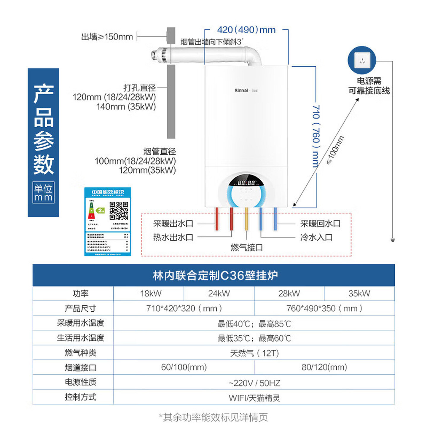 Rinnai林内采暖壁挂炉RBS-18C36/24C36/28C36/35C36家用洗浴地暖