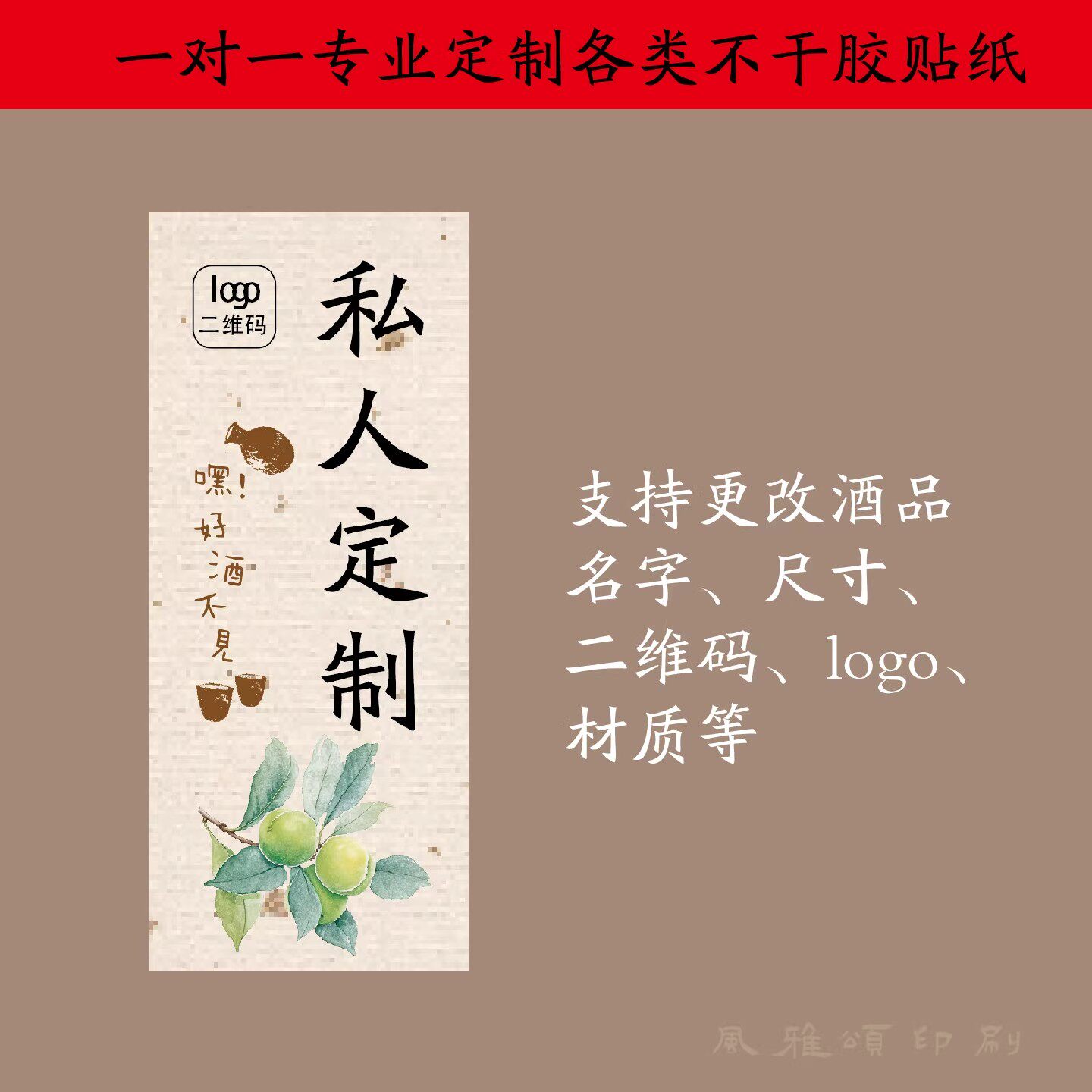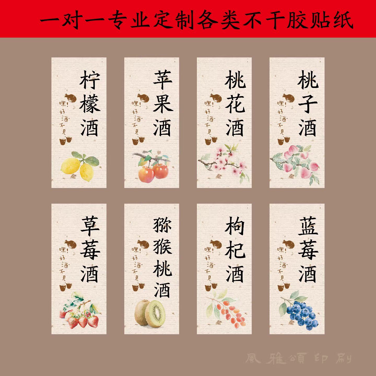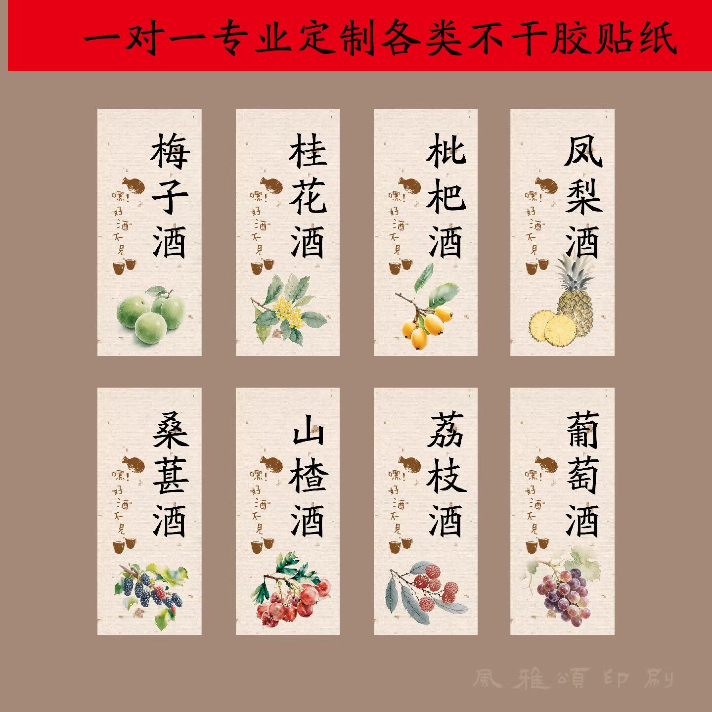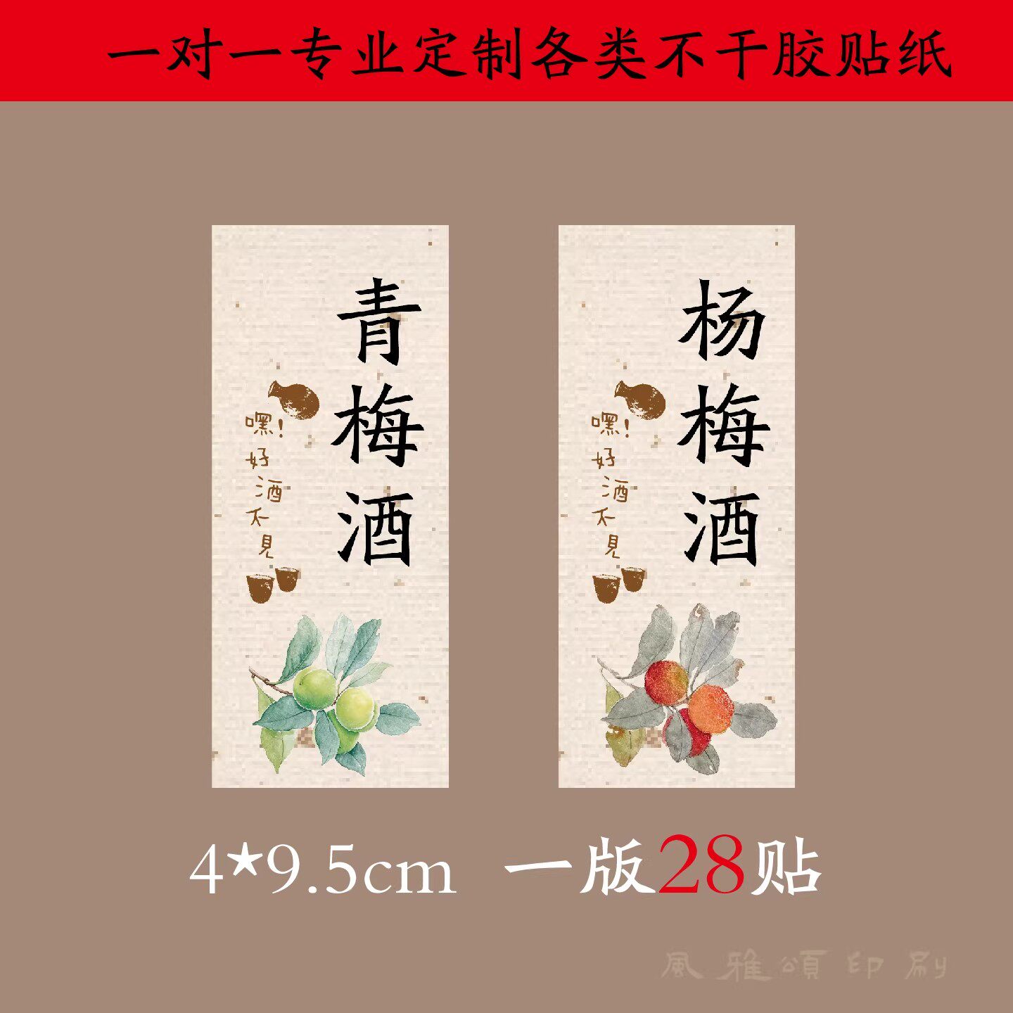 青梅酒杨梅酒梅子酒桂花水果酒瓶标签贴纸不干胶自粘logo定制打印