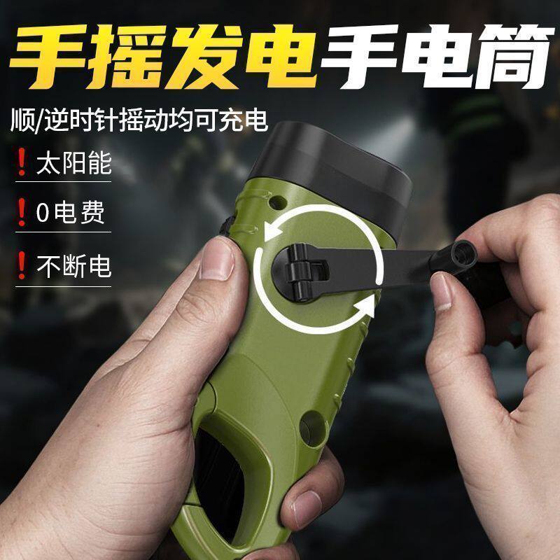 战备应急多功能太阳能手摇发电手电筒强光可充电户外防灾应急照明