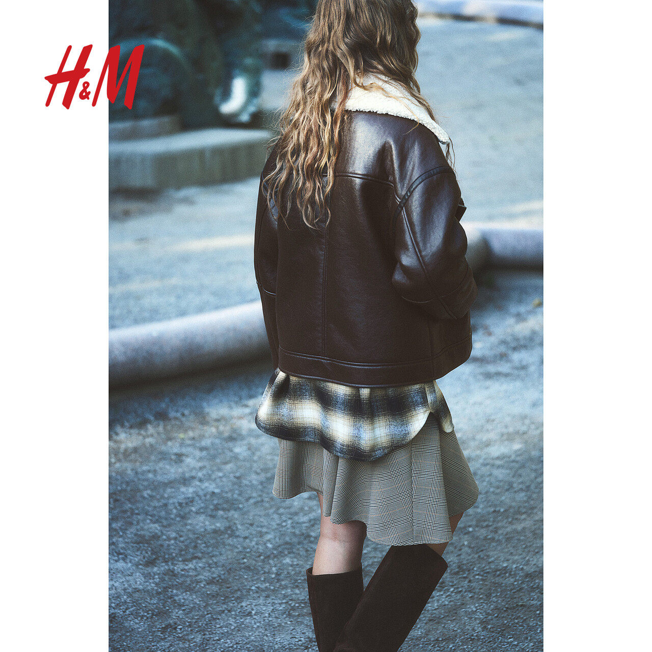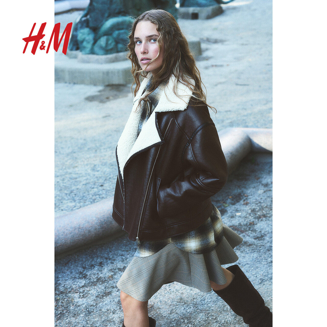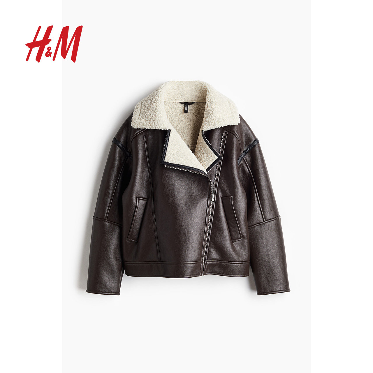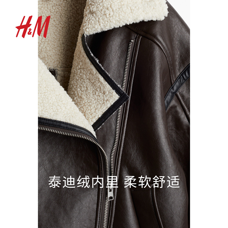 HM女装短外套春季newvintage新复古风泰迪绒衬里机车夹克1250906