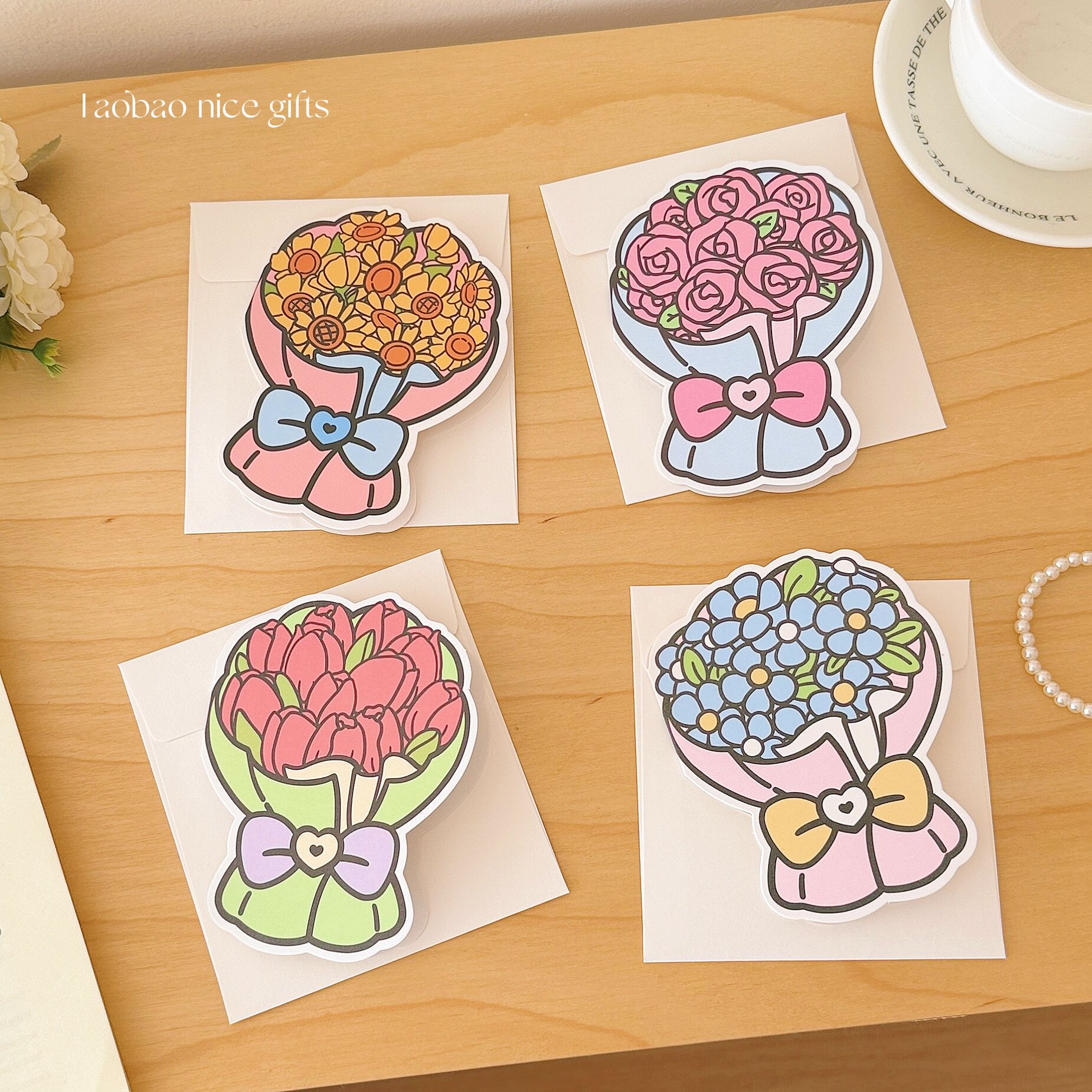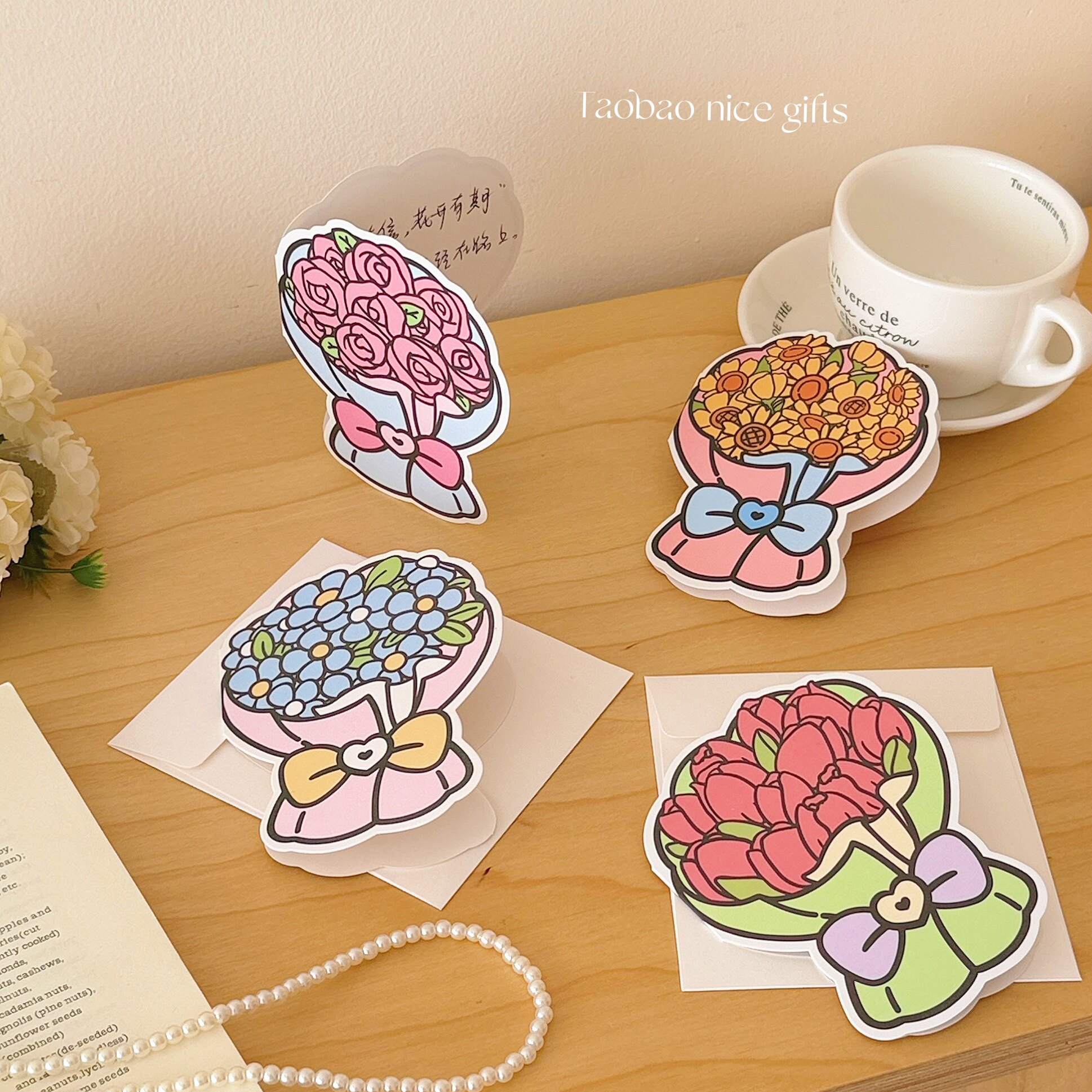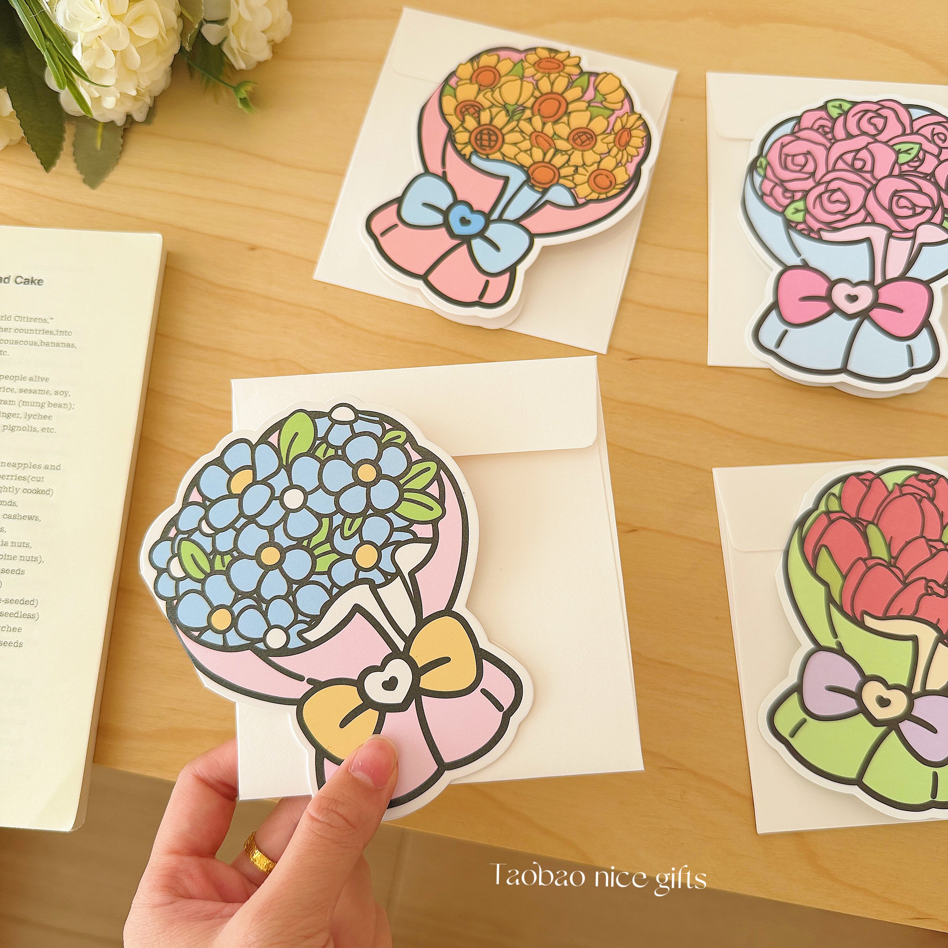 浪漫手捧花贺卡套装ins节日贺卡带信封鲜花装饰手写留言卡母亲节