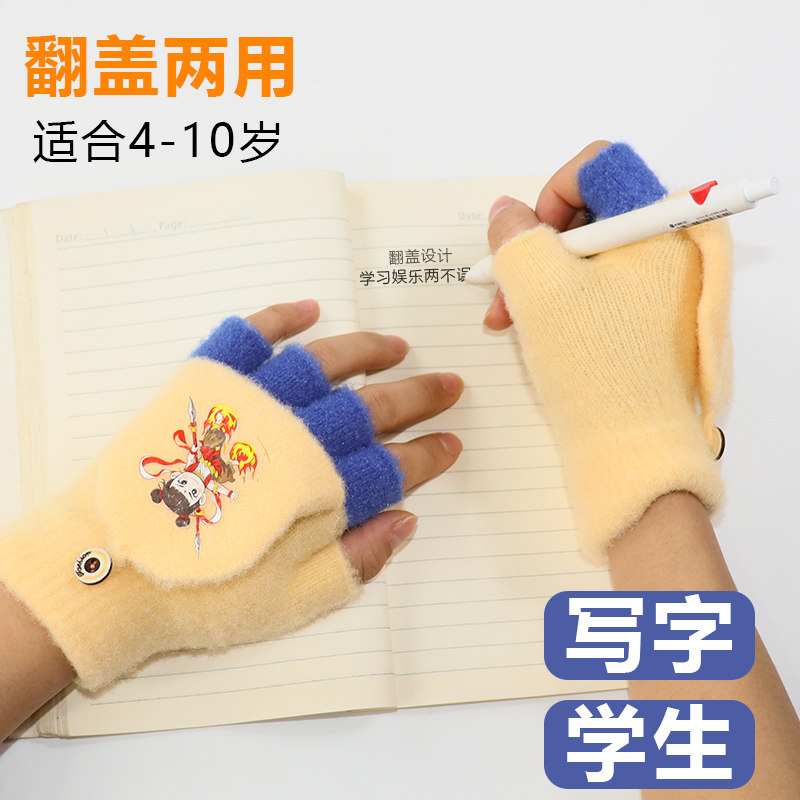 儿童手套男童可写字冬季保暖小孩五指翻盖男孩学生半指写作业冬天