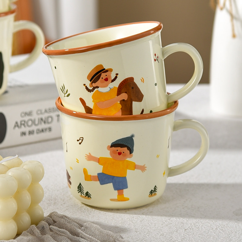 言仓线条小狗马克杯复古陶瓷水杯可爱儿童男女情侣圣诞生日礼物