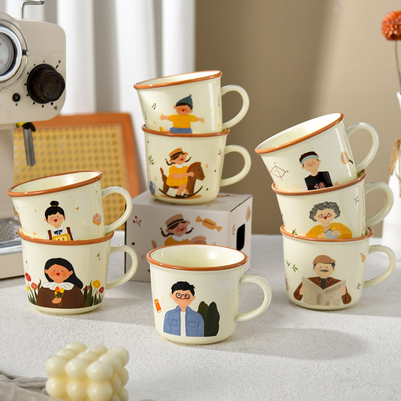 亲子杯无盖家用马克杯儿童牛奶早餐杯陶瓷杯子个人专用一家人卡通