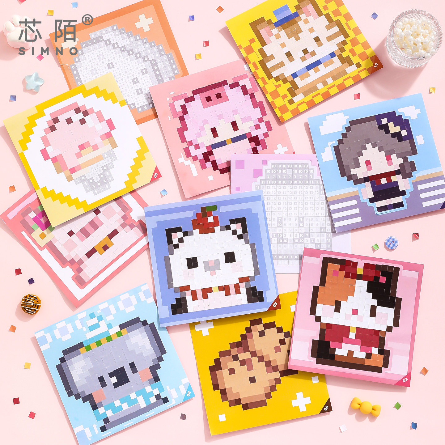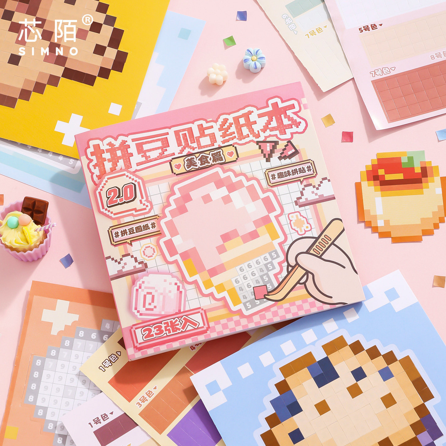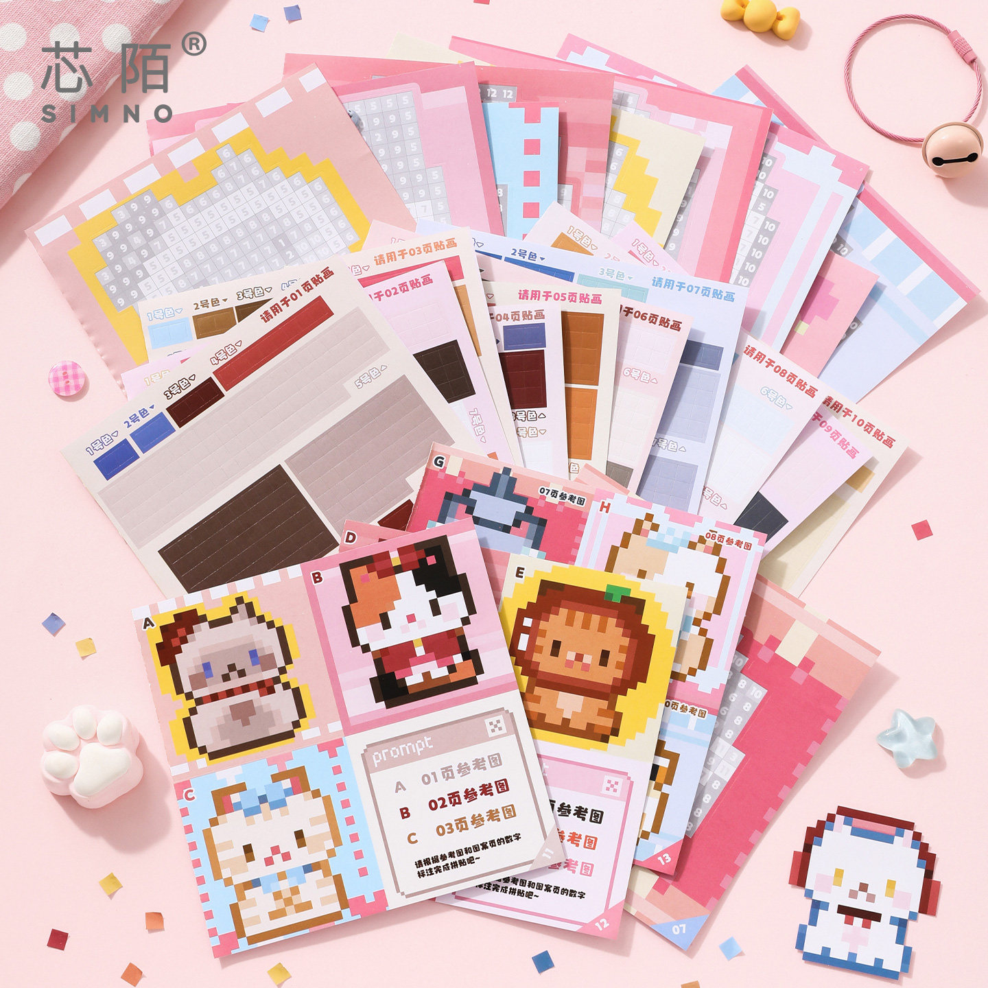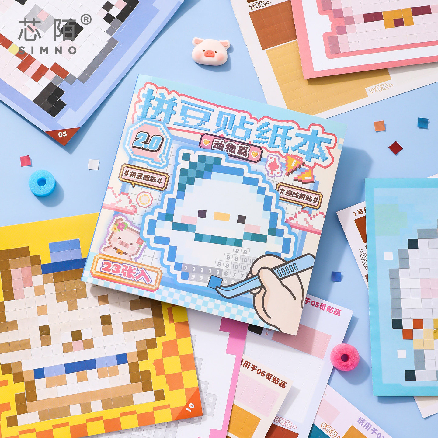 芯陌像素风拼豆贴纸本2高颜值迷你便携可爱手帐贴画豆豆本儿童益智手工玩具安静书咕卡拼贴手账diy装饰素材贴