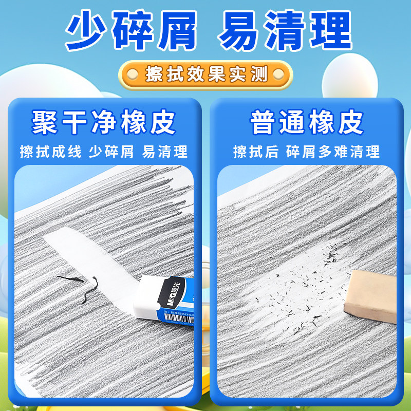 晨光聚干净橡皮小学生专用大号无邻苯小白橡皮擦干净不易留痕少屑中学生用绘图美术HB/2B/4B铅笔公考橡皮