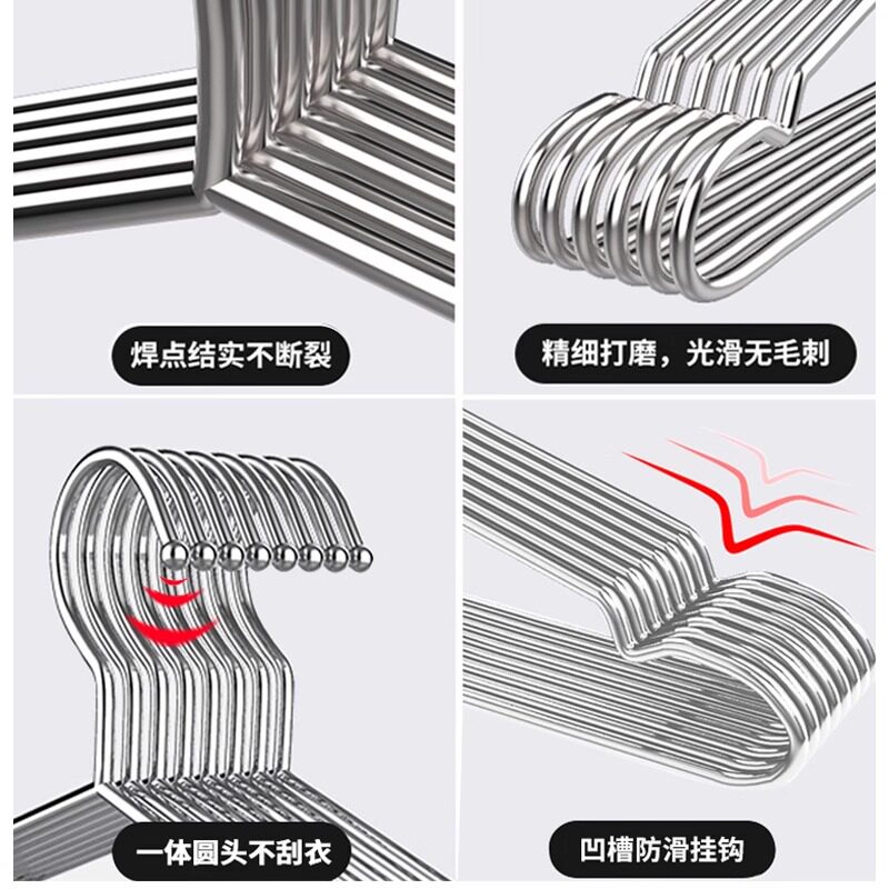 衣架家用挂衣100个不锈钢加粗宿舍用学生防滑无痕晾衣服挂钩撑子