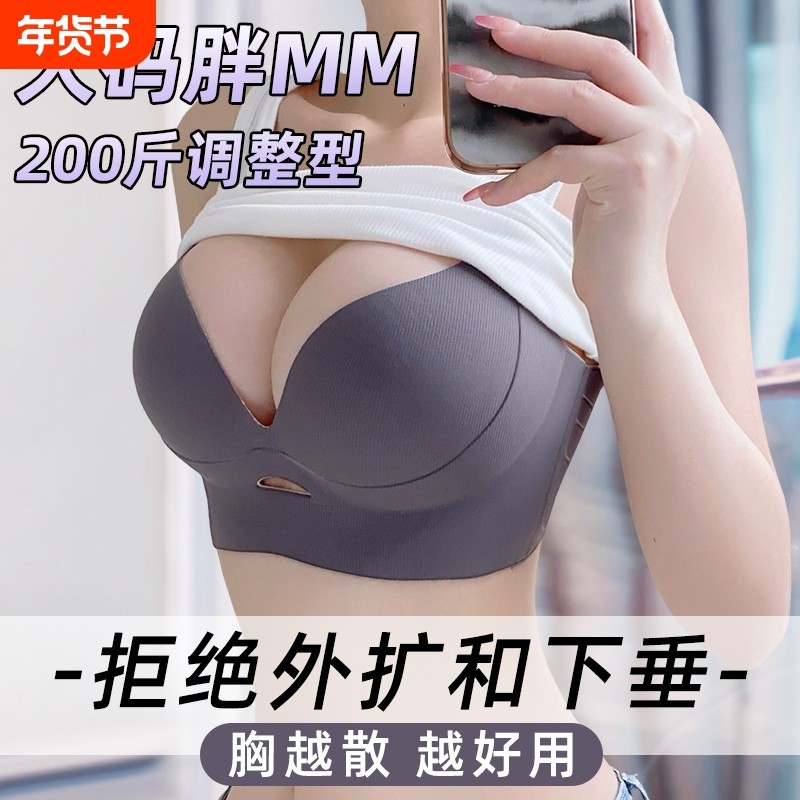 调整型内衣女外扩200斤防下垂大码无痕聚拢收副乳文胸无钢圈防滑