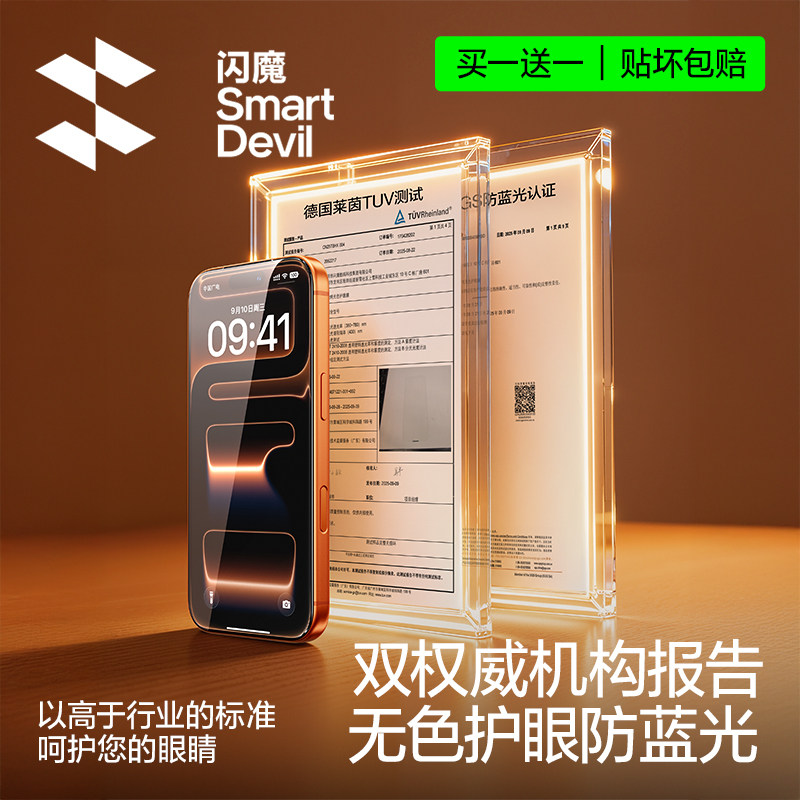 闪魔无色护眼膜适用苹果17ProMax钢化膜iPhone17Pro手机膜Air防摔保护16贴膜15无黑边14新款防蓝光13p全屏