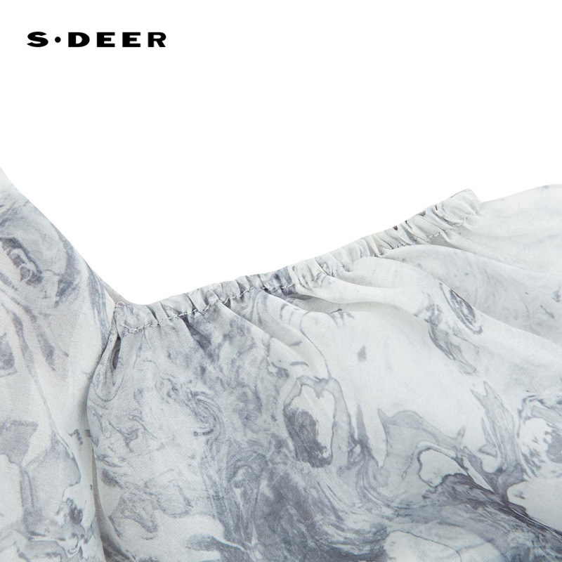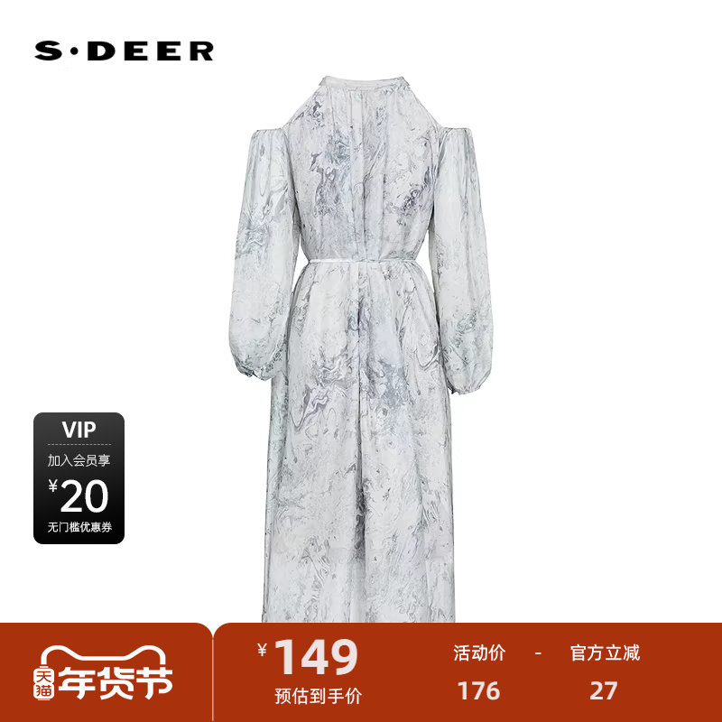 sdeer圣迪奥女装圆领系带露肩晕染灯笼袖连衣裙S223Z123C