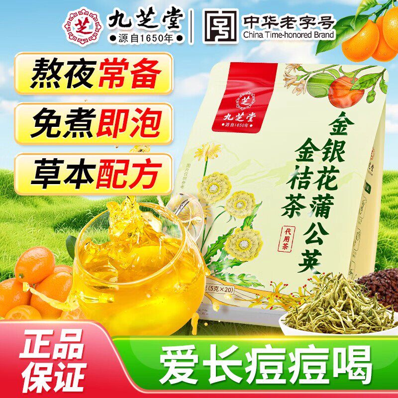 九芝堂蒲公英金桔茶包金银花搭甘草内调痘清解热抗消祛排炎火养生
