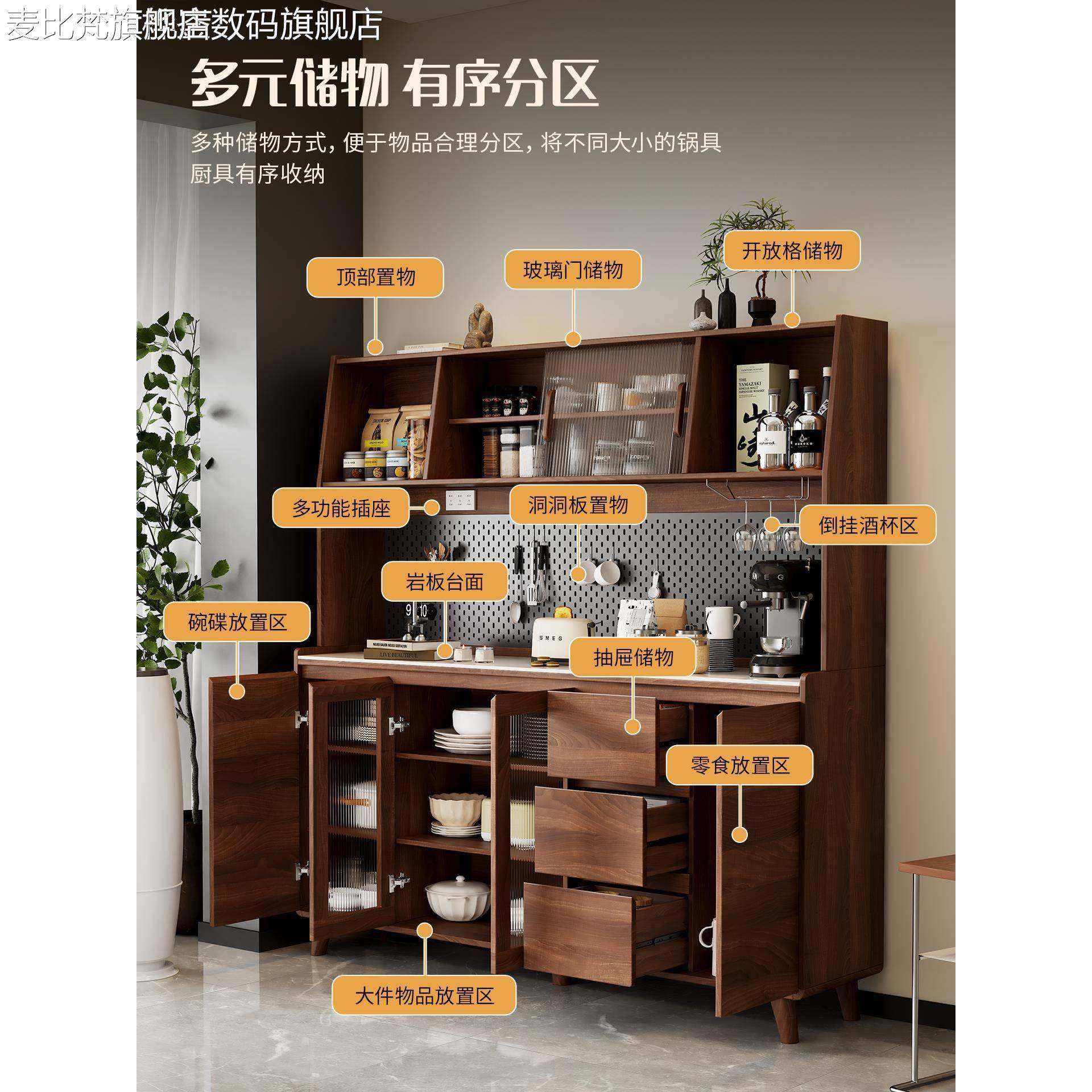 麦比梵实木餐边柜靠墙一体现代简约储物柜收纳一体双层多功能客厅茶水柜床笠拉车