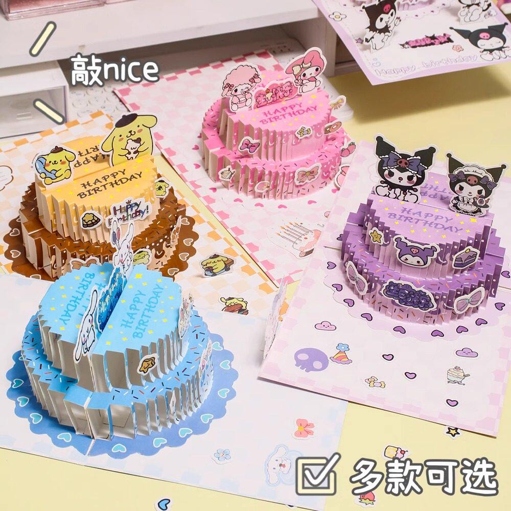 个性创意少女心库洛米免裁剪卡片卡通可爱高颜值玉桂狗3D立体贺卡