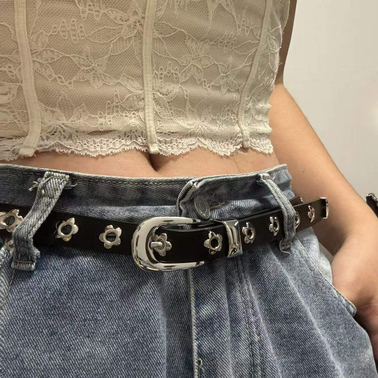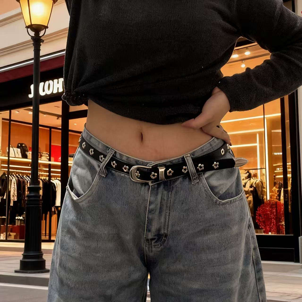 小众设计感原创花朵细款皮带百搭铆钉朋克风y2k潮流腰带休闲裤带