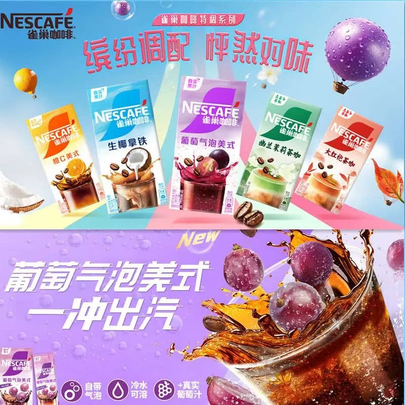雀巢特调果萃桃桃生椰拿铁茉莉乌龙红袍茶咖橙C葡萄美式速溶咖啡
