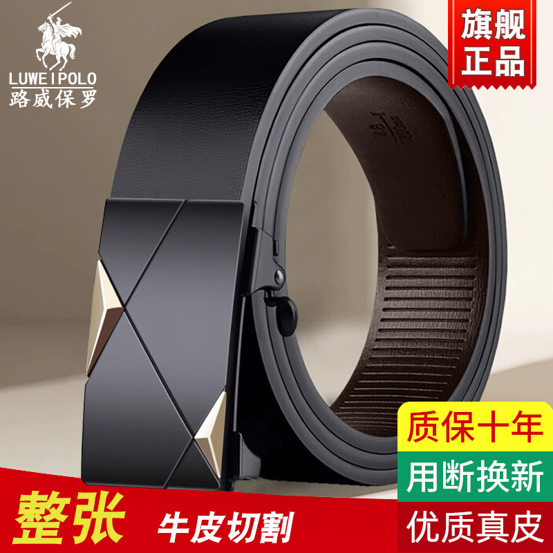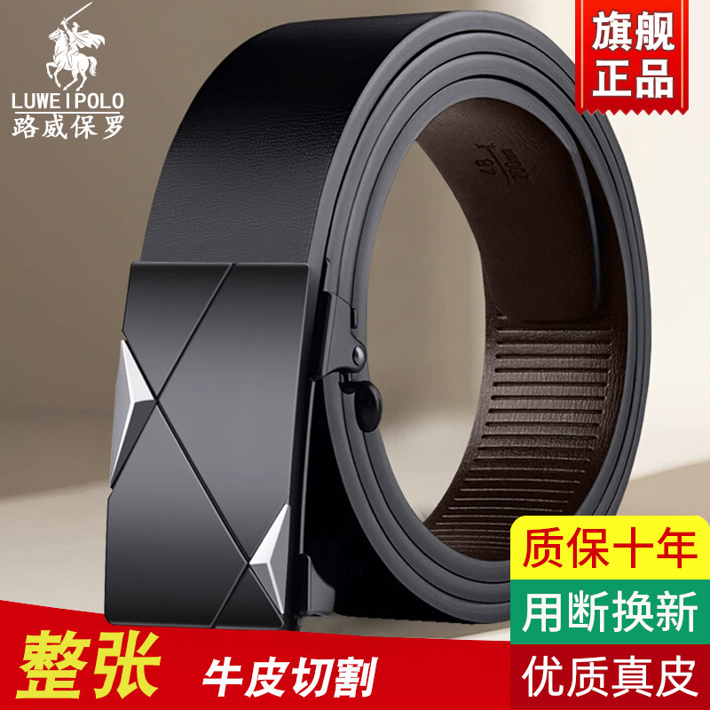 保罗男士皮带无牙内穿自动扣年轻人潮流牛皮男款商务裤腰带真皮