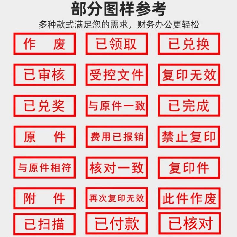 出纳会计光敏章科目章现金收讫付讫作废未付款结清复印无效附件副本受控文件已审核已报销附件与原件核对一致