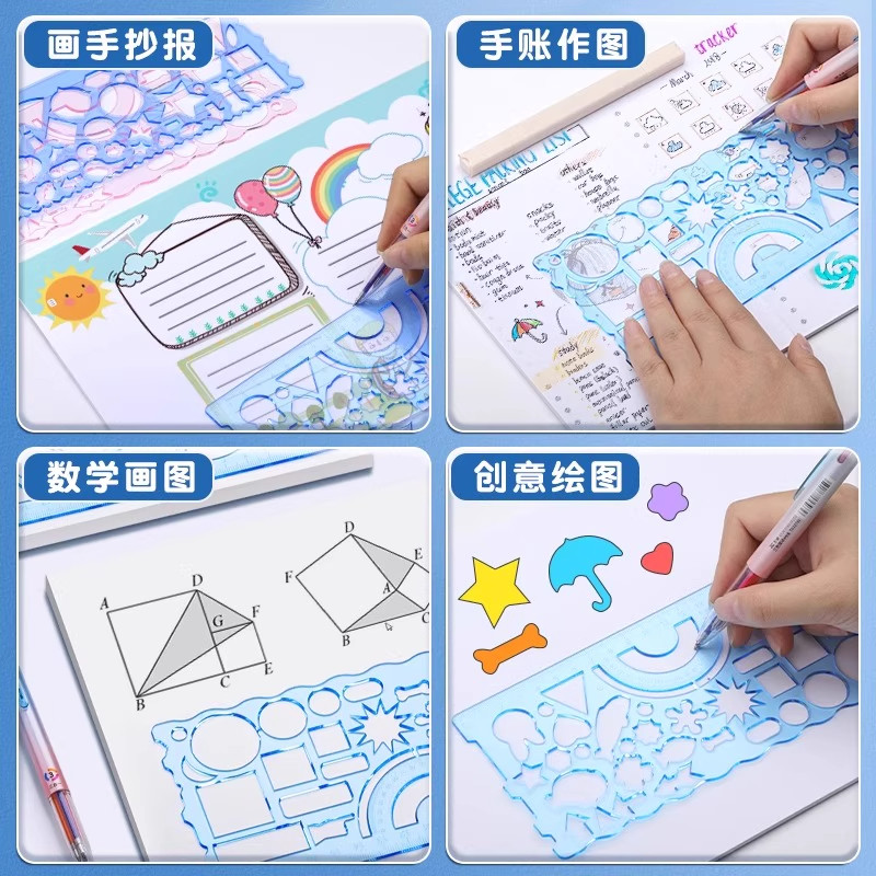 儿童尺子小学生百变万花尺手抄报多功能尺子画画模板绘画几何图形