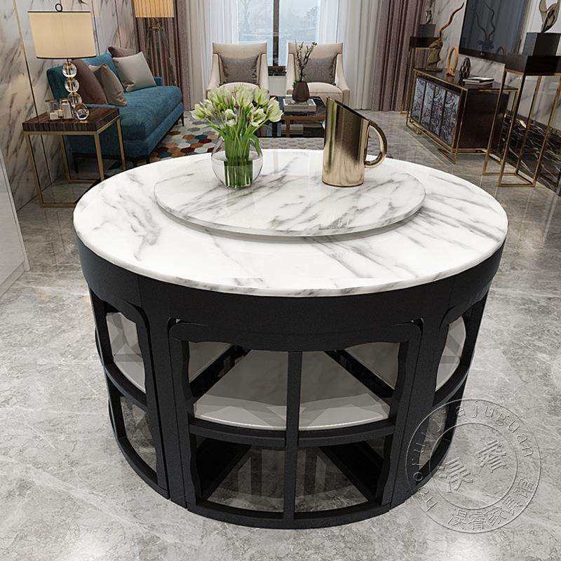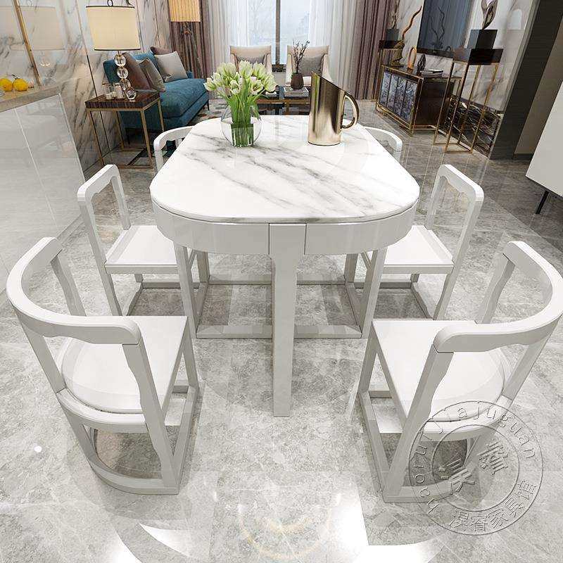 全实木餐桌椅小户型餐厅长方形现代简约大理石家用轻奢省空间饭桌