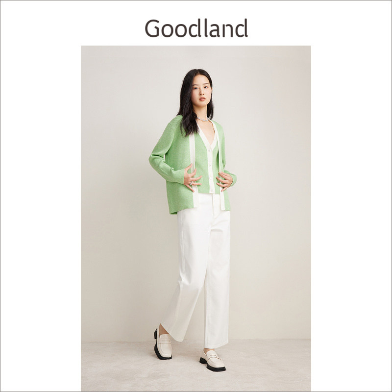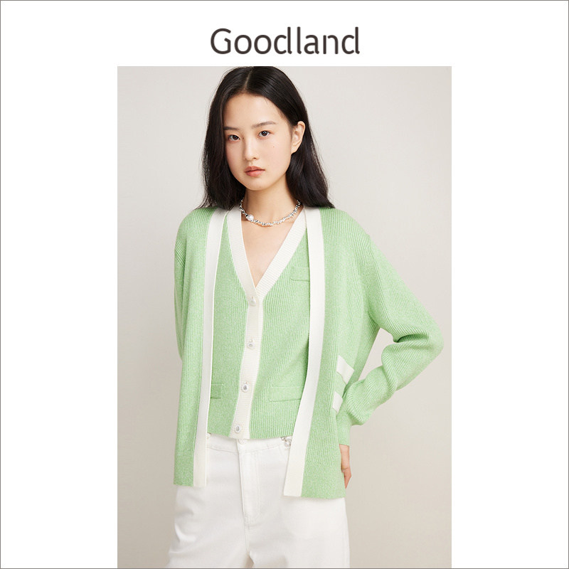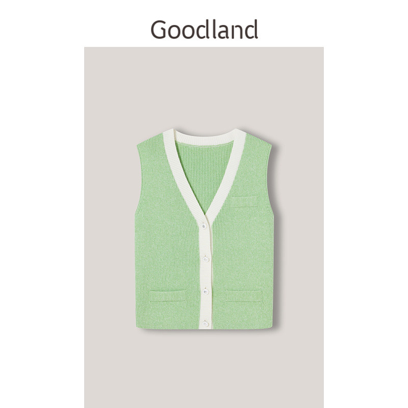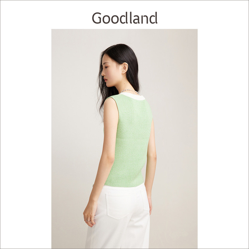 Goodland美地春季法式优雅简约无袖羊毛V领针织开衫